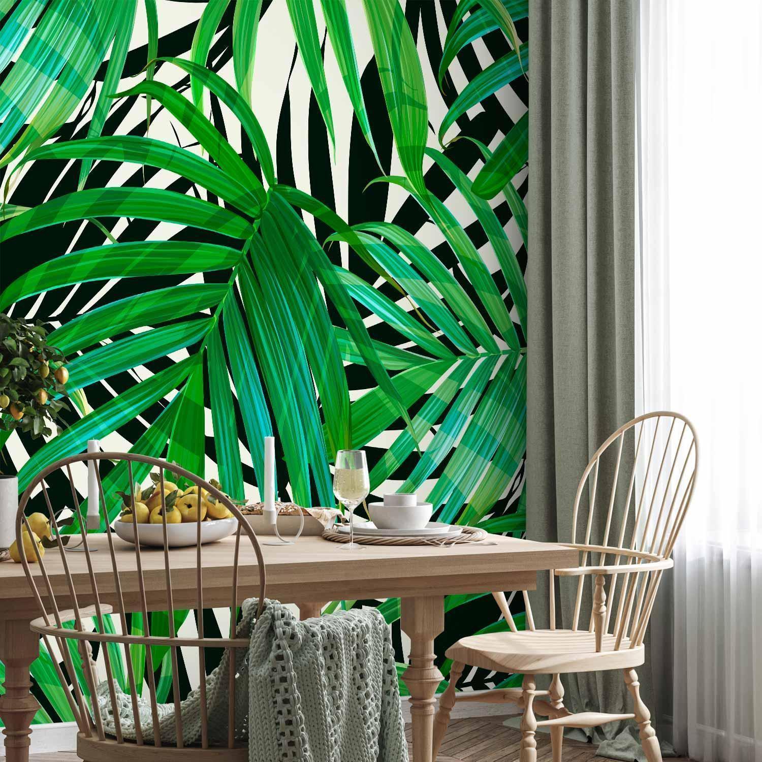 Fototapeten sind in den letzten Jahren eine häufige Wahl für Wanddekoration geworden. Sie sind eine großartige Wanddeko, die sich für verschiedene Räume eignet. Fototapeten sind eine hervorragende Alternative für das Wohnzimmer, für das Schlafzimmer und auch für das Kinderzimmer. Diese einzigartigen Dekorationen passen in praktisch jeden Raum. Wenn Sie sich immer noch fragen, ob dies die richtige Wahl ist, sind Sie hier genau richtig. Fototapete "Fototapete - Tropical Leaves" wird Ihr Interieur völlig verändern. Hier finden Sie, was Sie brauchen.