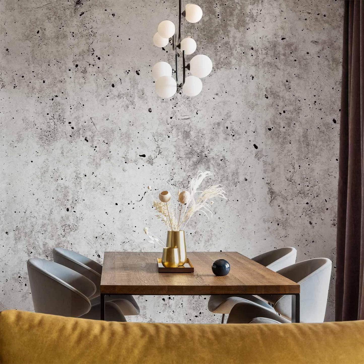 Die grauen Nuancen und strukturierte Oberfläche der Tapete erzeugen die Illusion von echtem Sichtbeton – perfekt für eine reduzierte Einrichtung mit viel Stil. Sie passt ideal zu Möbeln aus Holz, Metall oder Glas und lässt sich hervorragend mit Akzenten in Schwarz, Weiß oder Naturtönen kombinieren. Der Look ist dabei bewusst roh und puristisch, aber dennoch wohnlich.