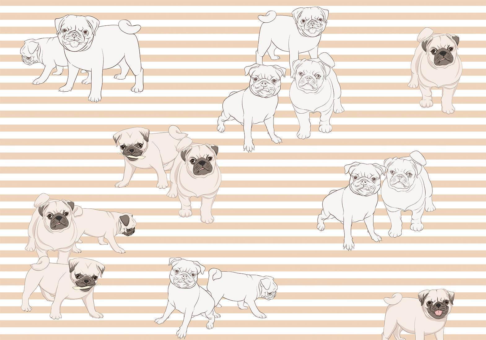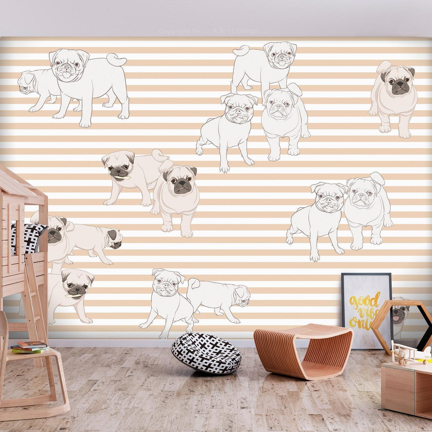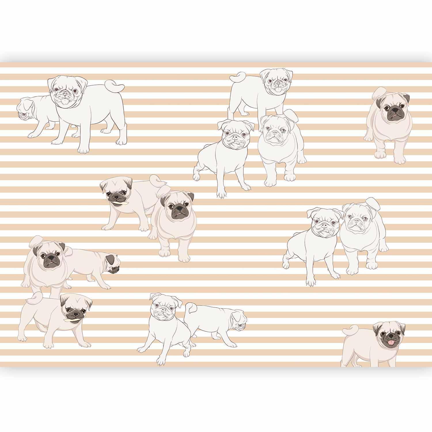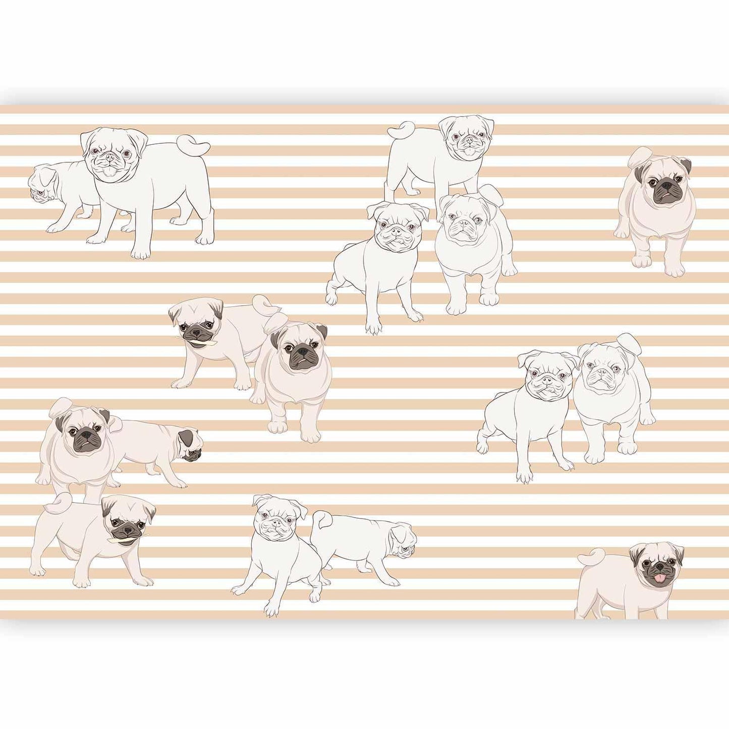 Hunde-Fans aufgepasst: Diese Fototapete vereint gute Laune, liebevolles Design und moderne Farbgestaltung. Die tierischen Begleiter sorgen Tag für Tag für ein wohliges Wohngefühl.