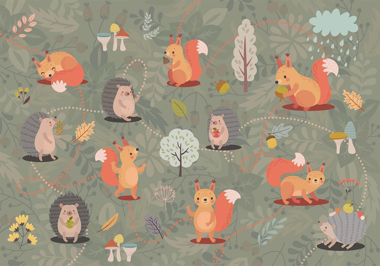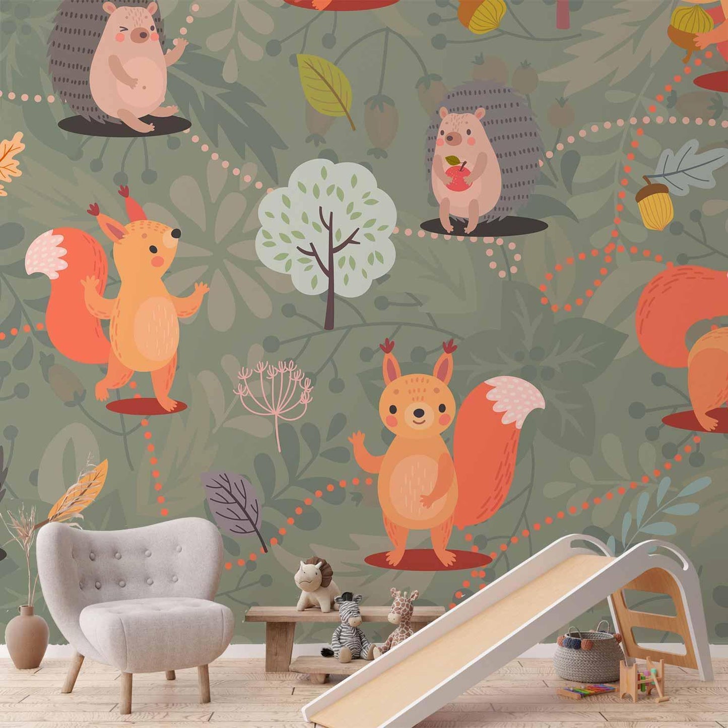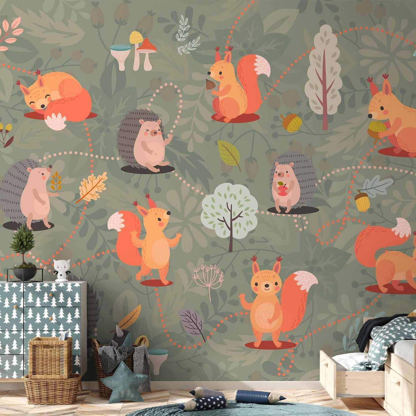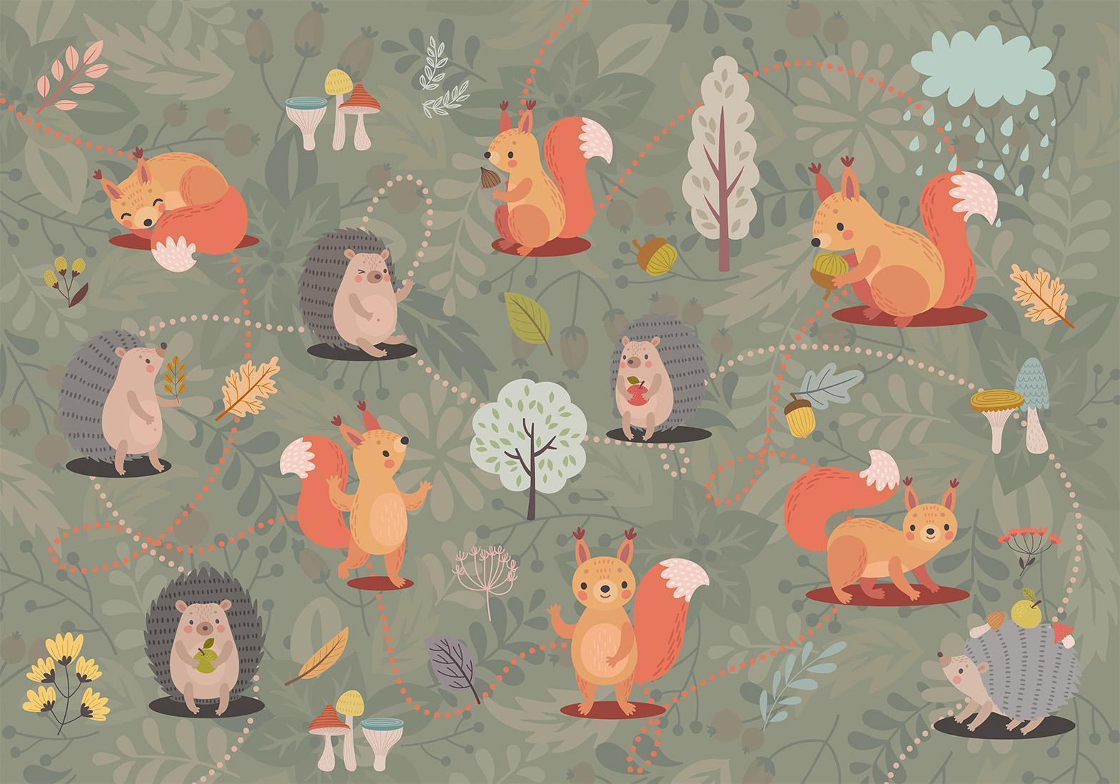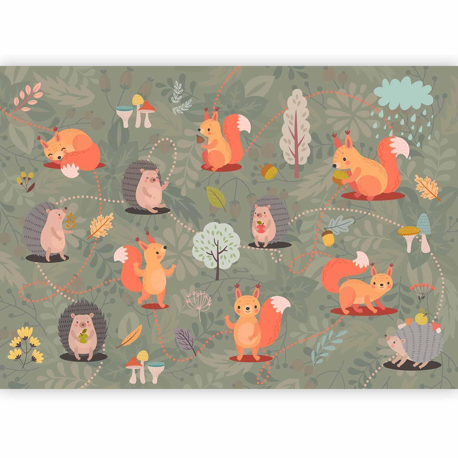 Fototapete „Waldfreunde“ – Bunte Tierwelt fürs Kinderzimmer
