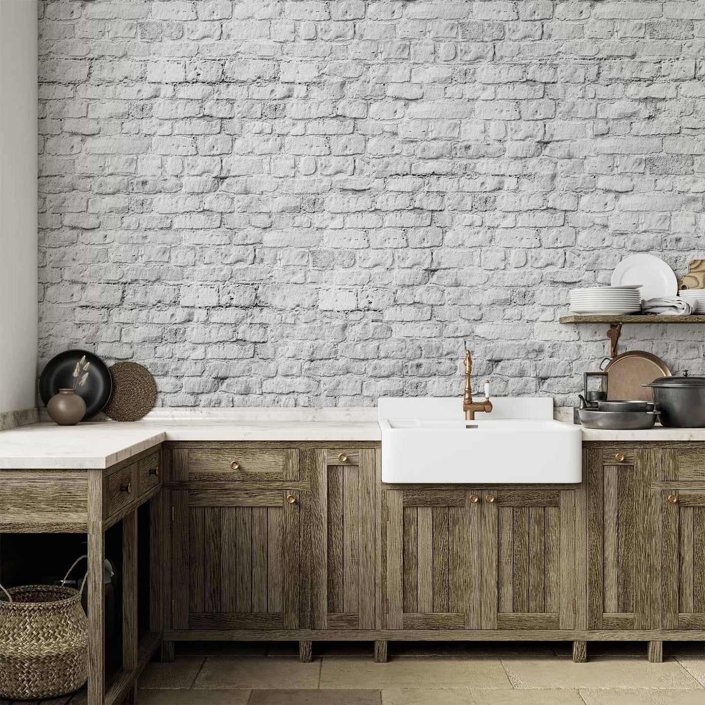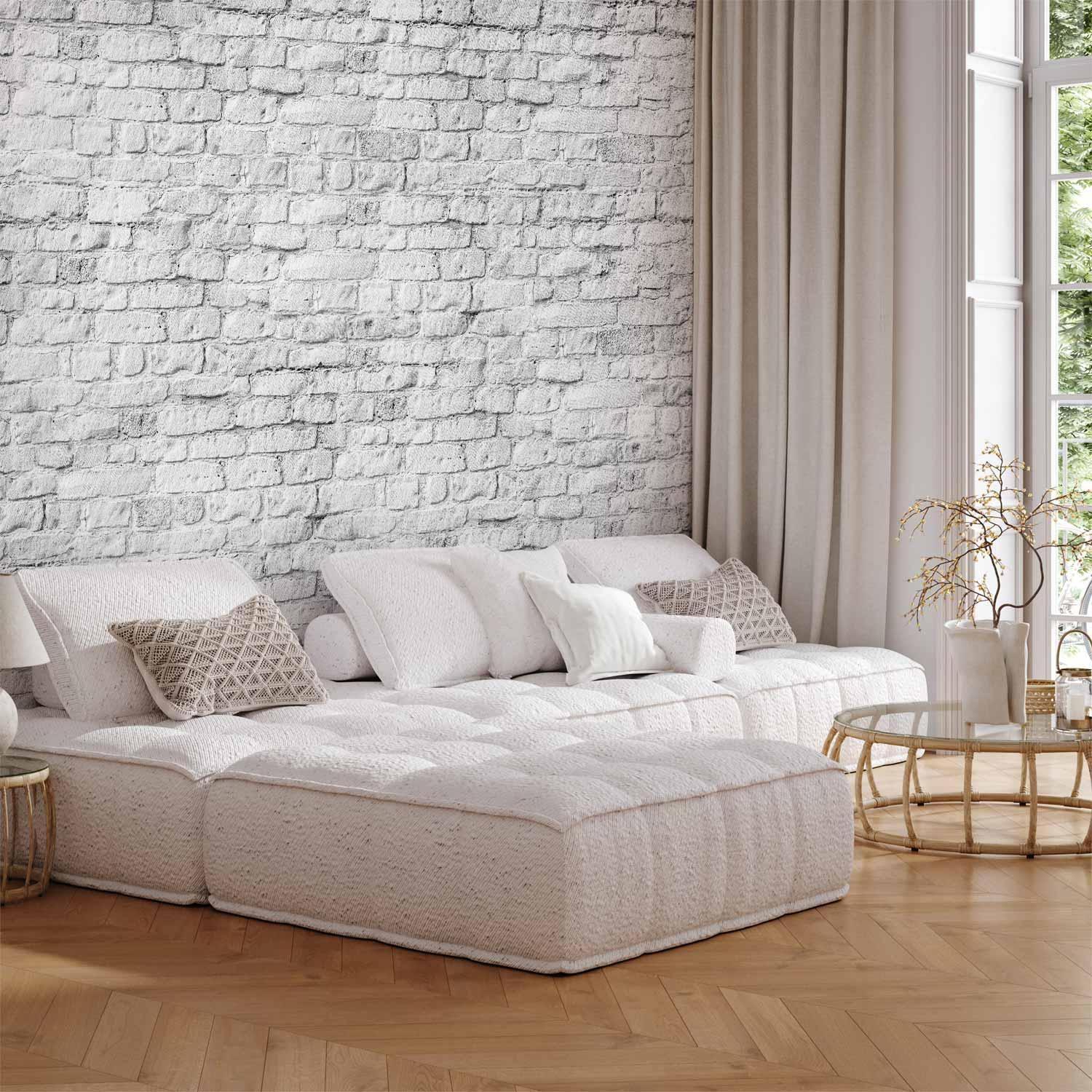 Die weiße Ziegelwand sorgt für eine helle, freundliche Atmosphäre und lässt sich wunderbar mit natürlichen Materialien wie Holz, Leinen oder Beton kombinieren. Ob im Wohnzimmer, Flur, Schlafzimmer oder Home-Office – diese Tapete passt sich jedem Einrichtungsstil an und verleiht Ihren Wänden eine strukturierte, elegante Oberfläche.
