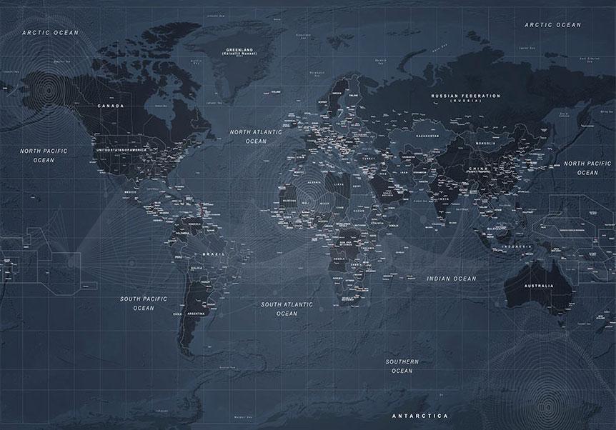 Fototapete Weltkarte in Blau - Eine hypnotisierende Reise um die Welt