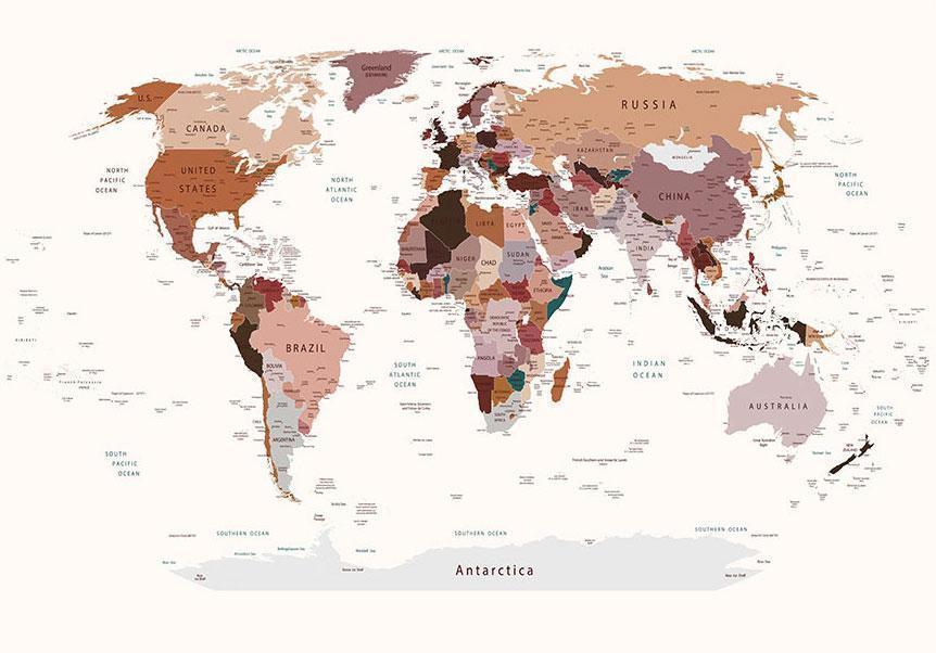 • Detailreiche Weltkarte mit sanften Farbübergängen,