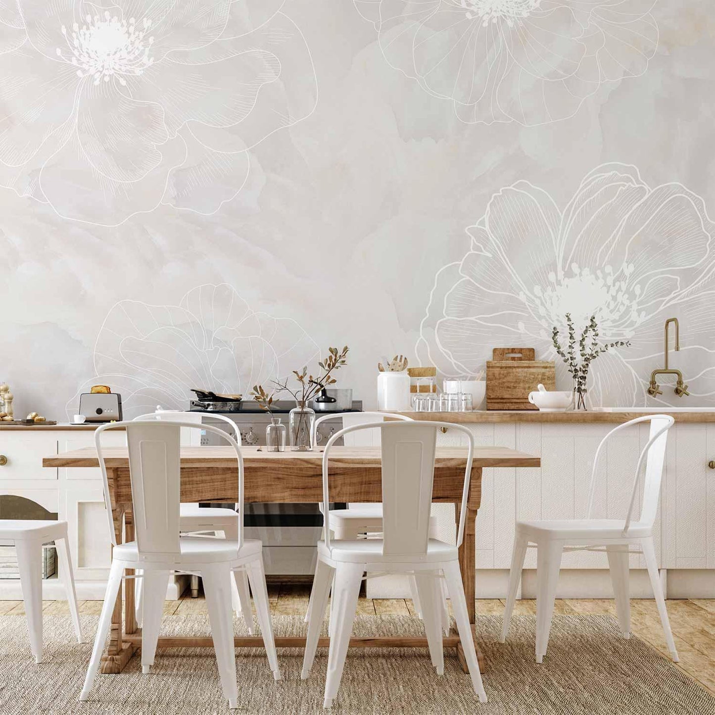 Fototapete "Zarte Momente" – Dezente Blütenkunst in Pastelltönen