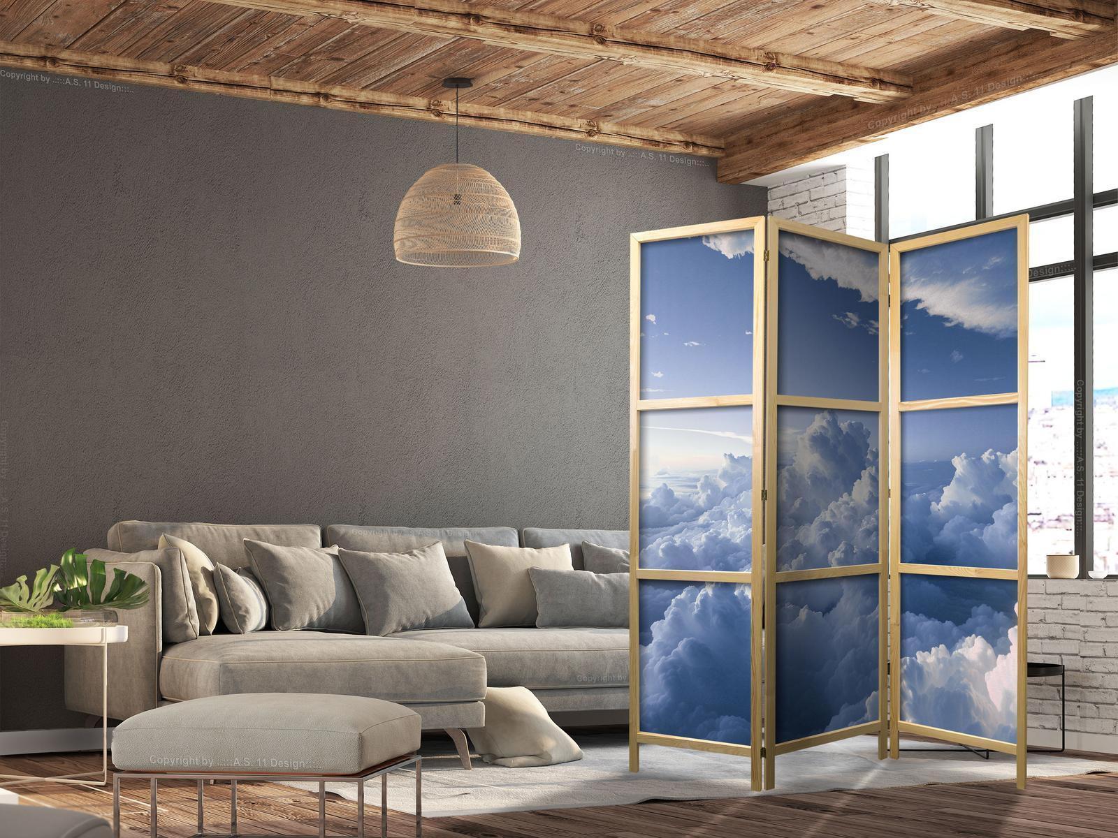 Japanischer Paravent "Japanischer Paravent - Aerial Landscapes: Rays Illuminating Fluffy Cloud Formations"