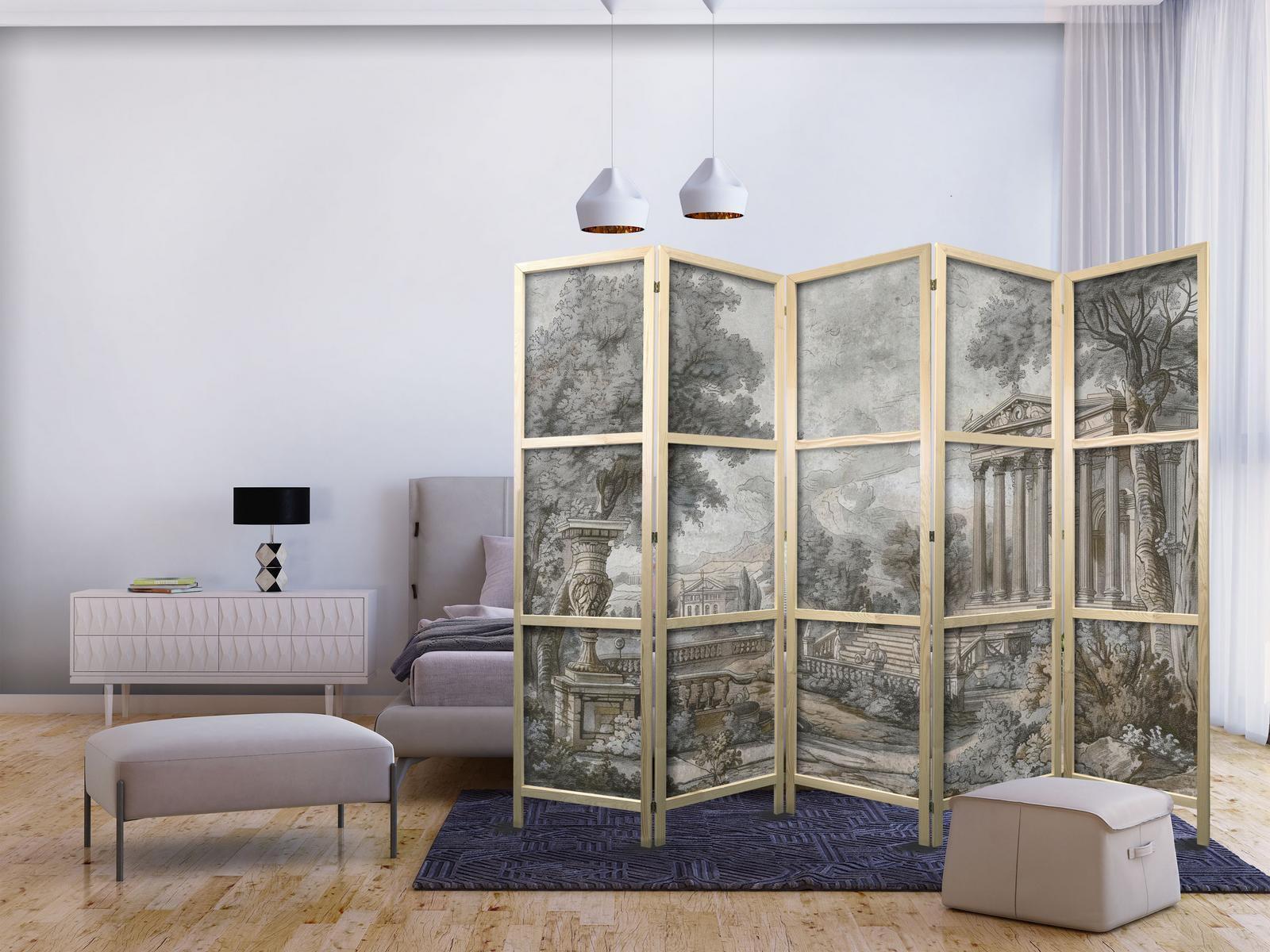 Liegen Ihnen der japanische Stil und die japanische Kultur am Herzen? Aber nicht nahe genug, um dort zu leben oder diesen Teil der Welt zu besuchen? Sind Sie auf der Suche nach einer modernen Dekoration für Ihr Zuhause? Sehen Sie sich die japanischen Paravents an. Dieses vergessene dekorative Element ist sowohl zu Hause als auch im Büro sehr nützlich. Für wenig Geld können Sie Ihre Wohnung fast wie neu einrichten. Japanische Paravents fügen sich perfekt in jeden Einrichtungsstil ein. Ein Paravent "Japanischer Paravent - Antique Landscape - Greek Temple on a Hill Among Lush Vegetation" ist nicht nur eine tolle Dekorationsidee, sondern auch eine praktische Möglichkeit, für Privatsphäre zu sorgen. Müssen Sie aus Ihrem Wohnzimmer zwei Räume machen? Ein japanischer Paravent ist in einem solchen Fall die ideale Lösung. Darüber hinaus unterstreicht das einseitig aufgedruckte Motiv mit Bezug zu Japan Ihr Interesse an der orientalischen Kultur. Wenn Sie in einer Einzimmerwohnung leben, ist japanischer Paravent eine gute Lösung, um die verschiedenen Bereiche voneinander zu trennen. Auf diese Weise schaffen Sie definierte Bereiche für das Esszimmer oder das Wohnzimmer oder sogar trennen Ihre Home-Office-Ecke ab und nutzen ein schönes Objekt, das viel Charme in Ihr Interieur bringt.