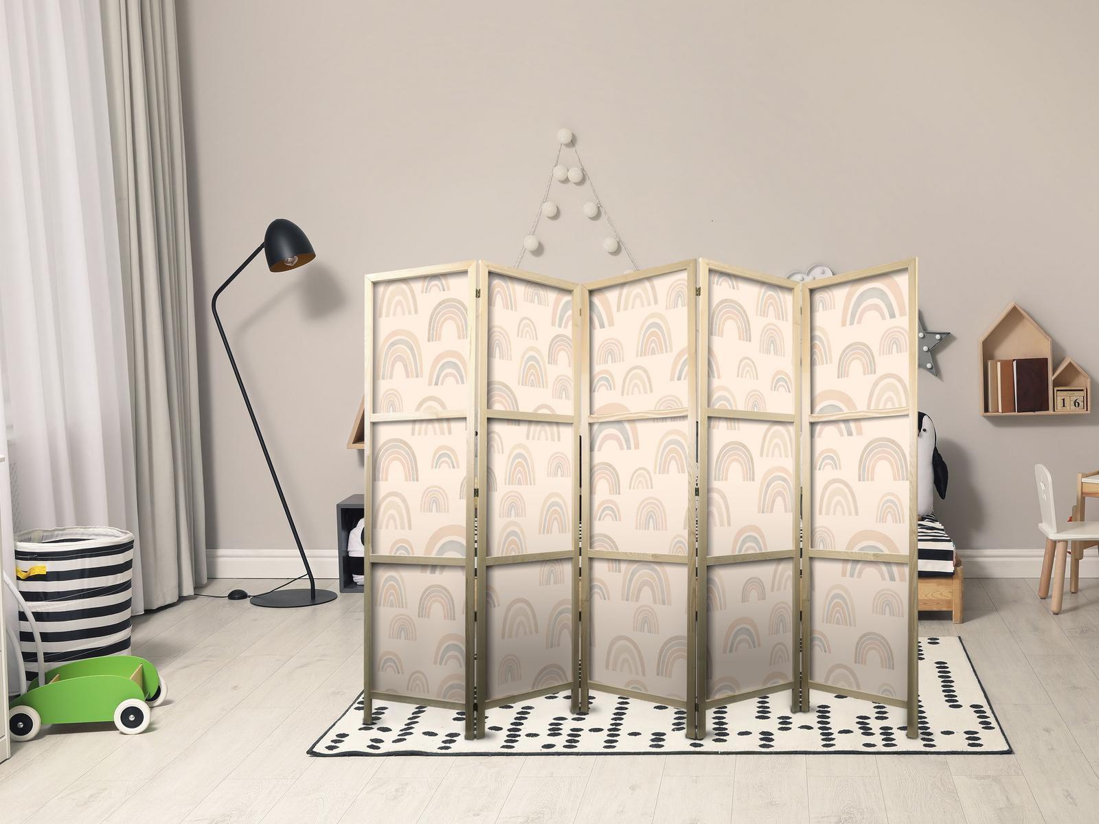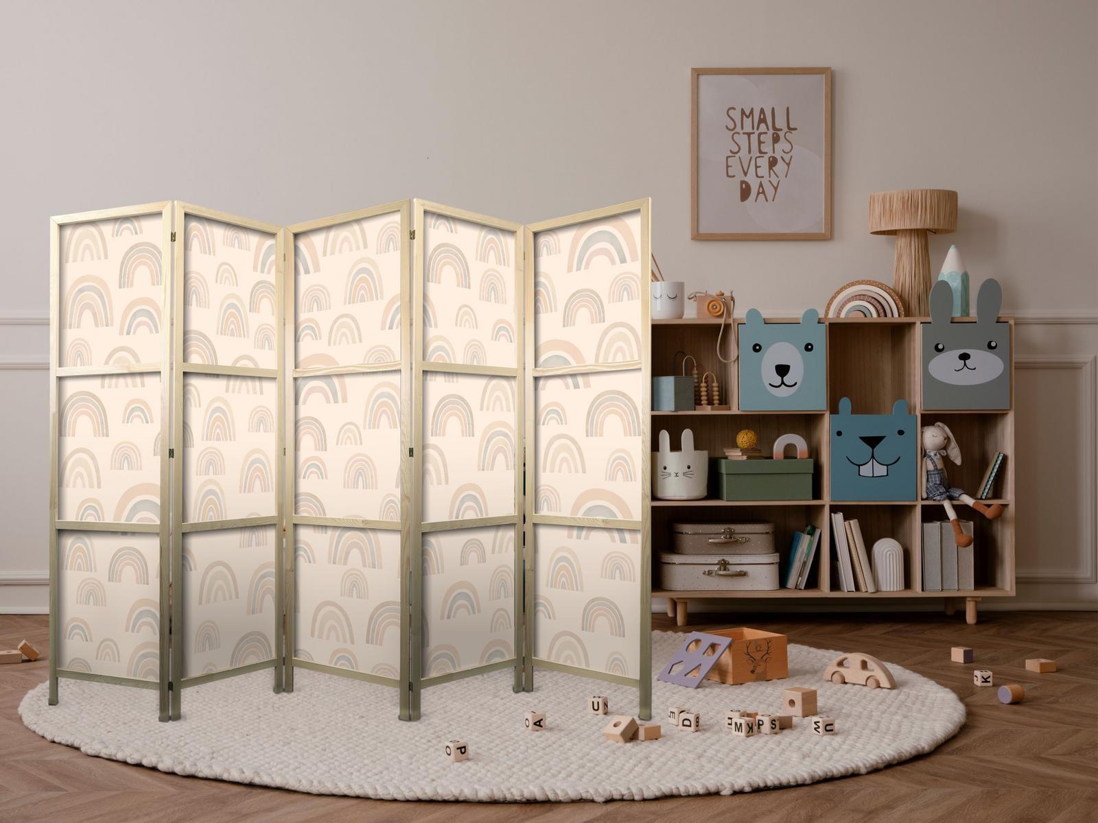 Japanischer Paravent "Japanischer Paravent - August Sky - Rainbows of various sizes in muted colors."