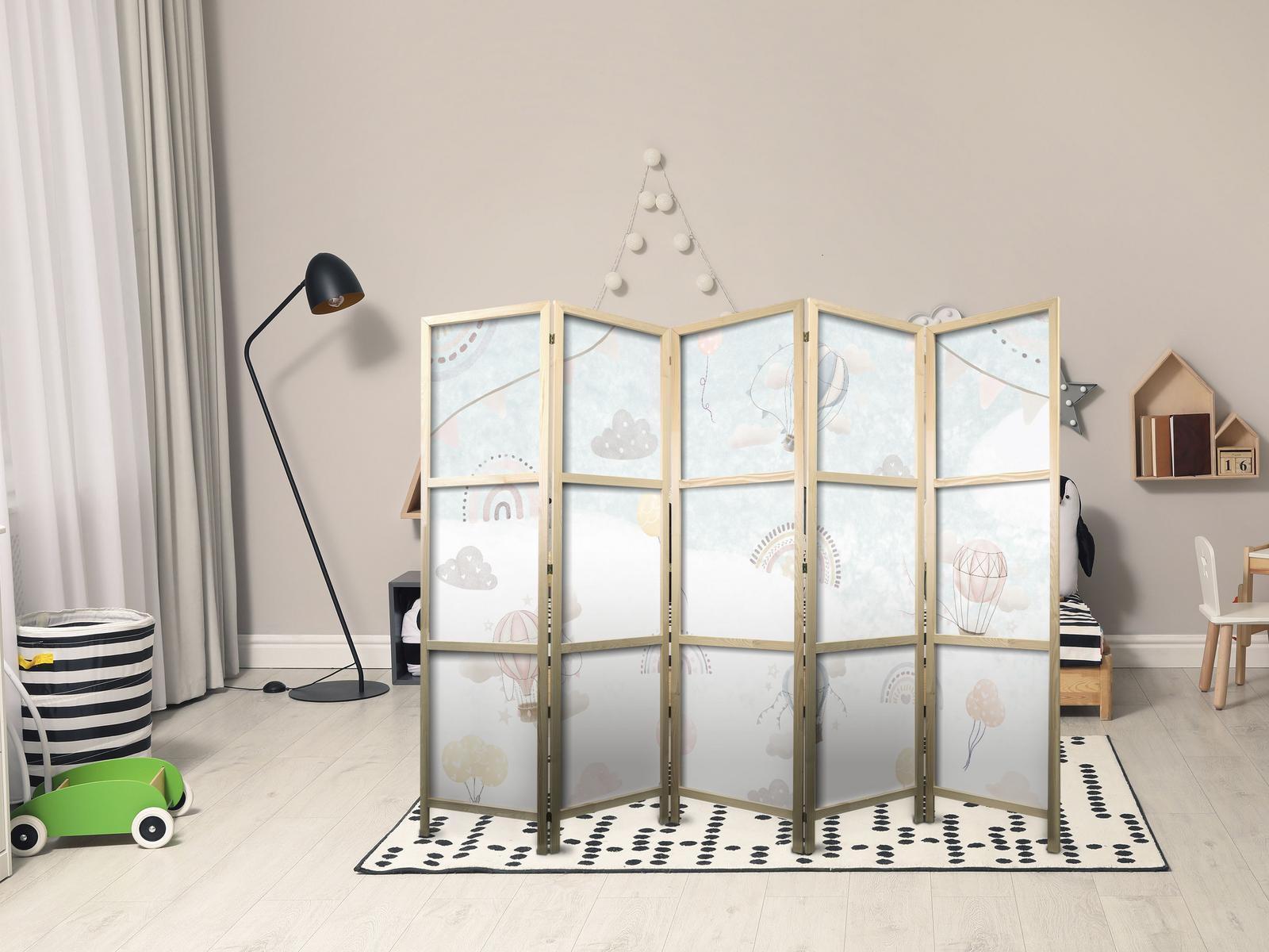 Liegen Ihnen der japanische Stil und die japanische Kultur am Herzen? Aber nicht nahe genug, um dort zu leben oder diesen Teil der Welt zu besuchen? Sind Sie auf der Suche nach einer modernen Dekoration für Ihr Zuhause? Sehen Sie sich die japanischen Paravents an. Dieses vergessene dekorative Element ist sowohl zu Hause als auch im Büro sehr nützlich. Für wenig Geld können Sie Ihre Wohnung fast wie neu einrichten. Japanische Paravents fügen sich perfekt in jeden Einrichtungsstil ein. Ein Paravent "Japanischer Paravent - Balloons in the Sky - Balloons in pastel colors flying through a cloudy sky - among rainbows and stars." ist nicht nur eine tolle Dekorationsidee, sondern auch eine praktische Möglichkeit, für Privatsphäre zu sorgen. Müssen Sie aus Ihrem Wohnzimmer zwei Räume machen? Ein japanischer Paravent ist in einem solchen Fall die ideale Lösung. Darüber hinaus unterstreicht das einseitig aufgedruckte Motiv mit Bezug zu Japan Ihr Interesse an der orientalischen Kultur. Wenn Sie in einer Einzimmerwohnung leben, ist japanischer Paravent eine gute Lösung, um die verschiedenen Bereiche voneinander zu trennen. Auf diese Weise schaffen Sie definierte Bereiche für das Esszimmer oder das Wohnzimmer oder sogar trennen Ihre Home-Office-Ecke ab und nutzen ein schönes Objekt, das viel Charme in Ihr Interieur bringt.