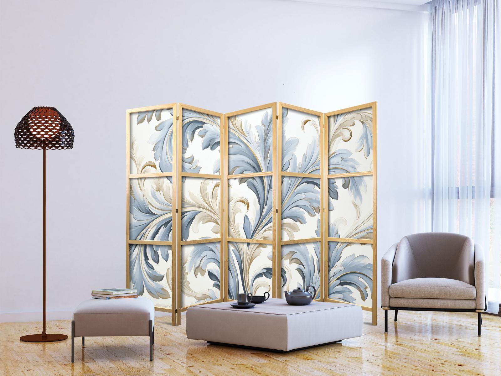 Japanischer Paravent "Japanischer Paravent - Baroque Ornaments in Light - Cream-Blue Colors"