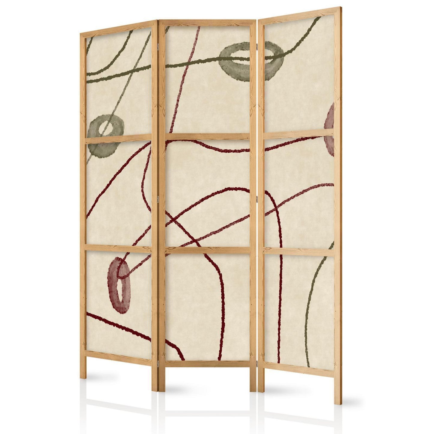 Japanischer Paravent "Japanischer Paravent - Bead Labyrinth - Minimalist Abstraction on a Worn Background"