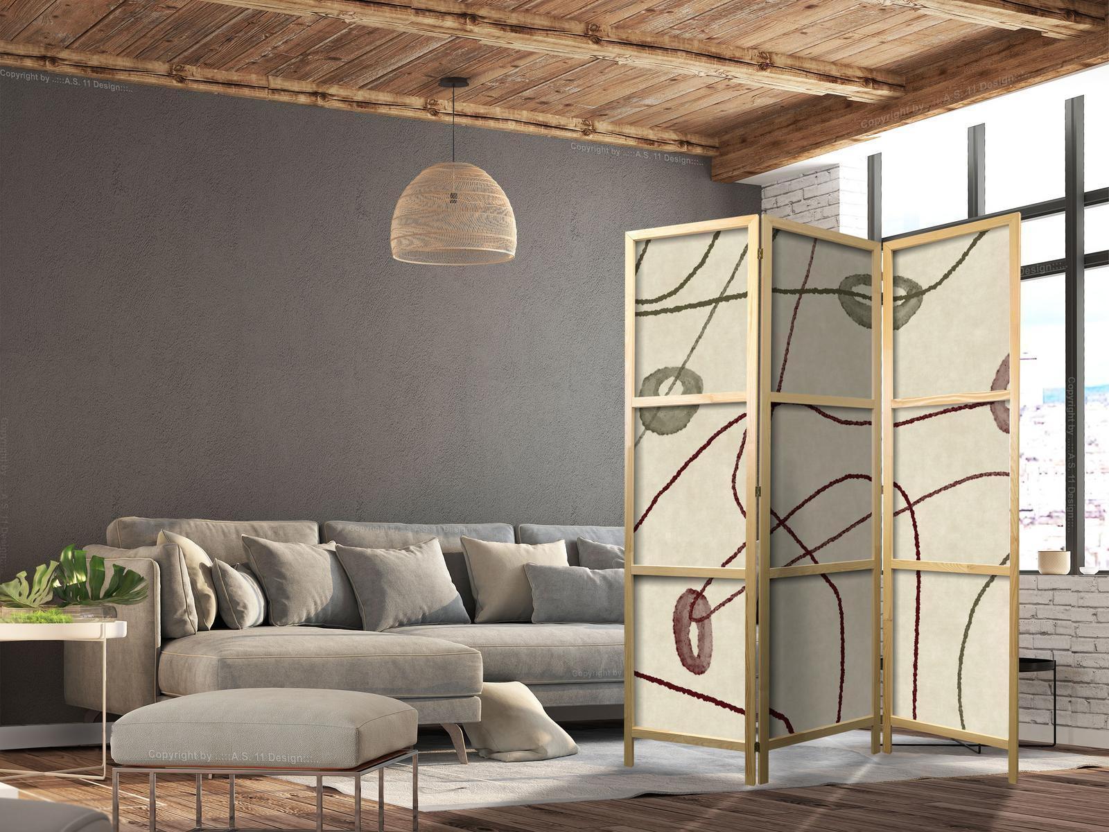 Liegen Ihnen der japanische Stil und die japanische Kultur am Herzen? Aber nicht nahe genug, um dort zu leben oder diesen Teil der Welt zu besuchen? Sind Sie auf der Suche nach einer modernen Dekoration für Ihr Zuhause? Sehen Sie sich die japanischen Paravents an. Dieses vergessene dekorative Element ist sowohl zu Hause als auch im Büro sehr nützlich. Für wenig Geld können Sie Ihre Wohnung fast wie neu einrichten. Japanische Paravents fügen sich perfekt in jeden Einrichtungsstil ein. Ein Paravent "Japanischer Paravent - Bead Labyrinth - Minimalist Abstraction on a Worn Background" ist nicht nur eine tolle Dekorationsidee, sondern auch eine praktische Möglichkeit, für Privatsphäre zu sorgen. Müssen Sie aus Ihrem Wohnzimmer zwei Räume machen? Ein japanischer Paravent ist in einem solchen Fall die ideale Lösung. Darüber hinaus unterstreicht das einseitig aufgedruckte Motiv mit Bezug zu Japan Ihr Interesse an der orientalischen Kultur. Wenn Sie in einer Einzimmerwohnung leben, ist japanischer Paravent eine gute Lösung, um die verschiedenen Bereiche voneinander zu trennen. Auf diese Weise schaffen Sie definierte Bereiche für das Esszimmer oder das Wohnzimmer oder sogar trennen Ihre Home-Office-Ecke ab und nutzen ein schönes Objekt, das viel Charme in Ihr Interieur bringt.