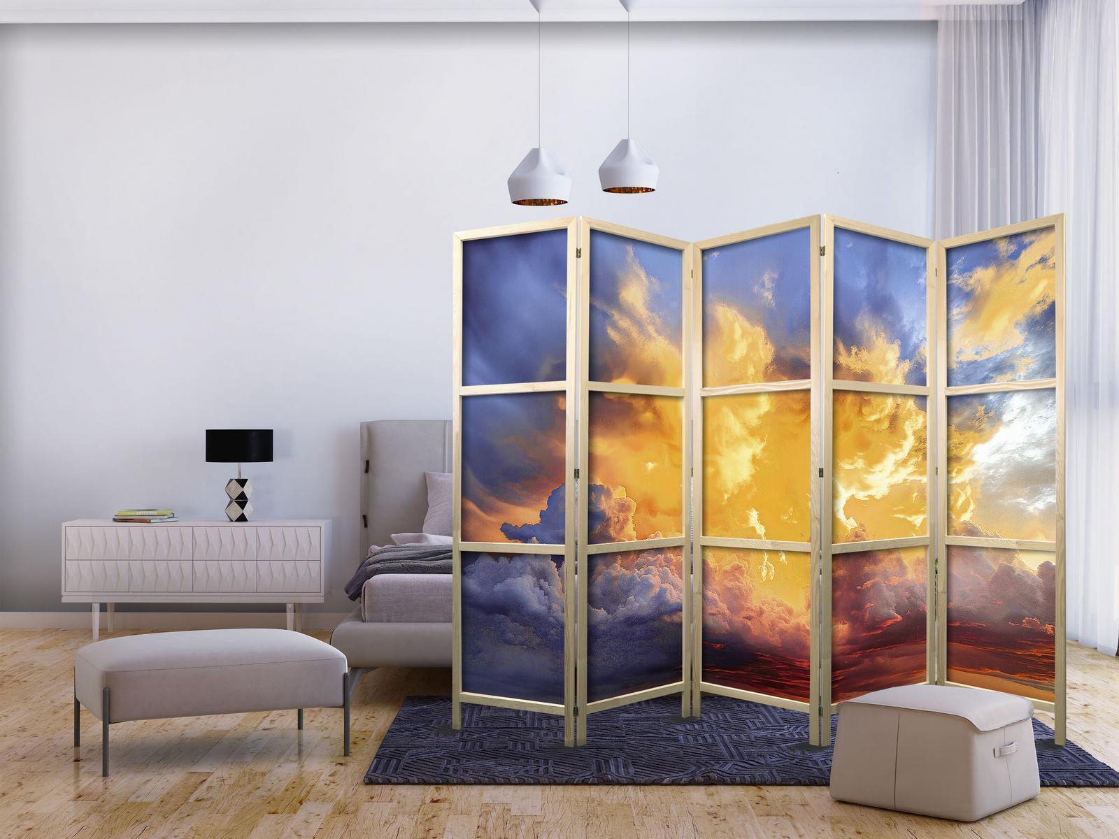 Liegen Ihnen der japanische Stil und die japanische Kultur am Herzen? Aber nicht nahe genug, um dort zu leben oder diesen Teil der Welt zu besuchen? Sind Sie auf der Suche nach einer modernen Dekoration für Ihr Zuhause? Sehen Sie sich die japanischen Paravents an. Dieses vergessene dekorative Element ist sowohl zu Hause als auch im Büro sehr nützlich. Für wenig Geld können Sie Ihre Wohnung fast wie neu einrichten. Japanische Paravents fügen sich perfekt in jeden Einrichtungsstil ein. Ein Paravent "Japanischer Paravent - Beautiful Sunset - Clouds in Warm Shades" ist nicht nur eine tolle Dekorationsidee, sondern auch eine praktische Möglichkeit, für Privatsphäre zu sorgen. Müssen Sie aus Ihrem Wohnzimmer zwei Räume machen? Ein japanischer Paravent ist in einem solchen Fall die ideale Lösung. Darüber hinaus unterstreicht das einseitig aufgedruckte Motiv mit Bezug zu Japan Ihr Interesse an der orientalischen Kultur. Wenn Sie in einer Einzimmerwohnung leben, ist japanischer Paravent eine gute Lösung, um die verschiedenen Bereiche voneinander zu trennen. Auf diese Weise schaffen Sie definierte Bereiche für das Esszimmer oder das Wohnzimmer oder sogar trennen Ihre Home-Office-Ecke ab und nutzen ein schönes Objekt, das viel Charme in Ihr Interieur bringt.