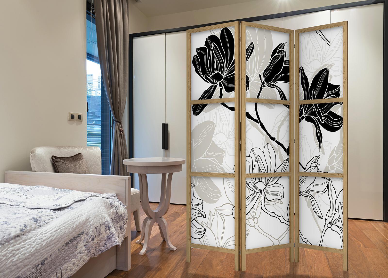 Japanischer Paravent "Japanischer Paravent - Black and White Flowers I"