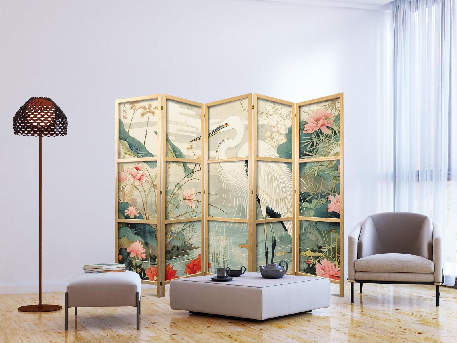 Die asiatischen Paravents aus unserer Kollektion werden auf hochwertiges Vlies gedruckt. Dank des Materials hat sich der sichere Paravent auch im Zimmer eines jungen Orient-Liebhaber bewährt. Asiatische Paravents sind perfekt für ein Restaurant in diesem Stil. Sie können die Bereiche zwischen den Tischen abgrenzen, so dass sich die Gäste wohlfühlen. Japanisches Paravent "Japanischer Paravent - By an Asian pond - an illustration in the style of a Japanese engraving, depicting a heron" ist auch eine gute Option für Schönheitssalons. Wenn Sie keine Wände bauen wollen, deren Layout Sie nach einer gewissen Zeit langweilen könnte, ist ein japanischer Paravent ideal für Sie! Es trennt die Kundenbereiche und verleiht ihnen Intimität.Details zur Produktsicherheit