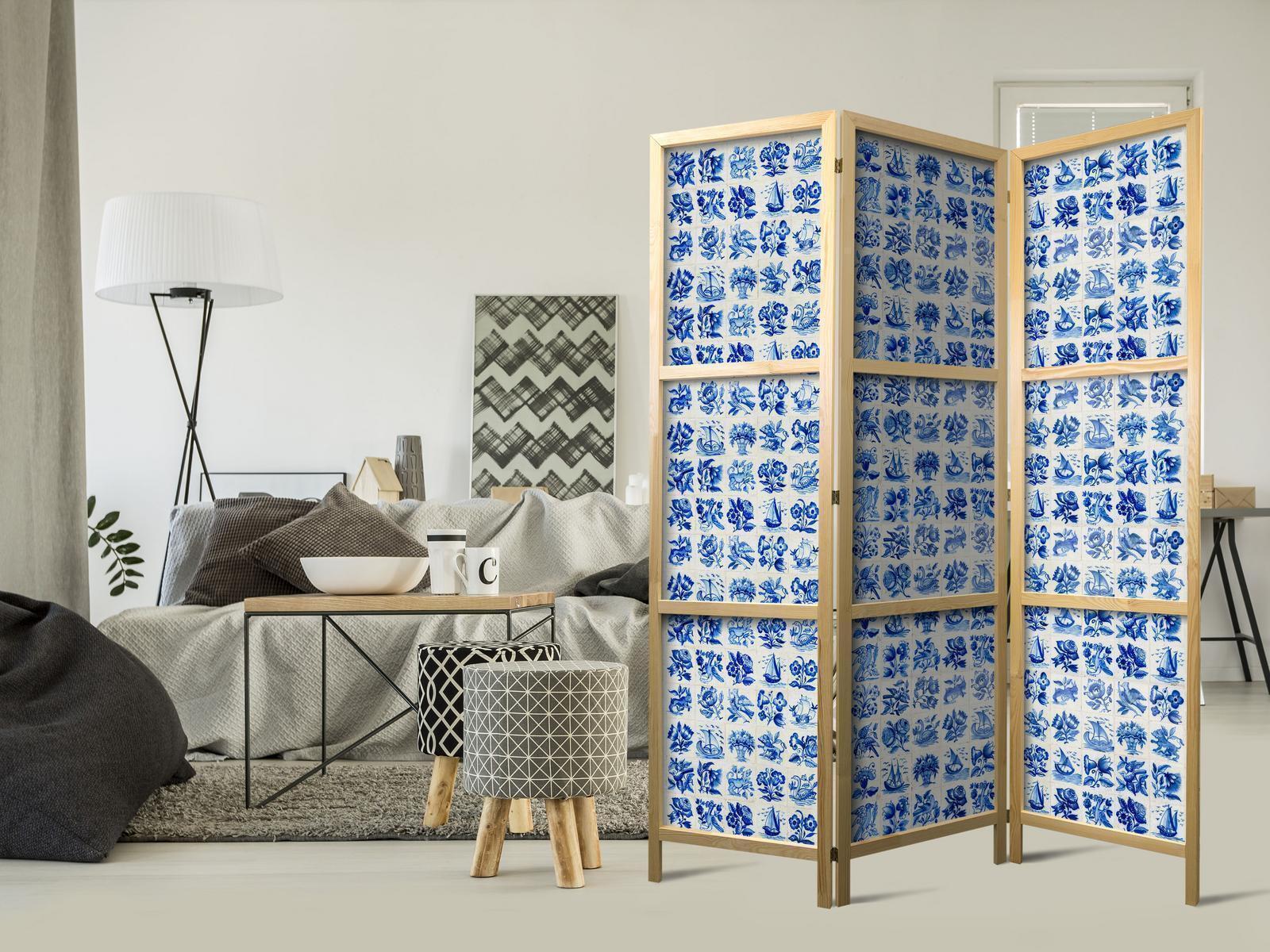 Japanischer Paravent "Japanischer Paravent - Ceramic Tiles - Traditional Portuguese Blue Tiles Azulejos"