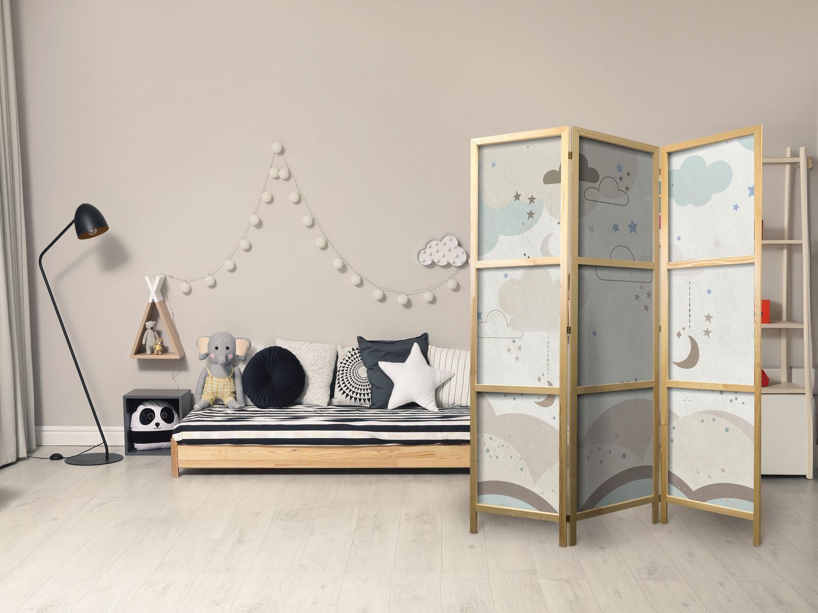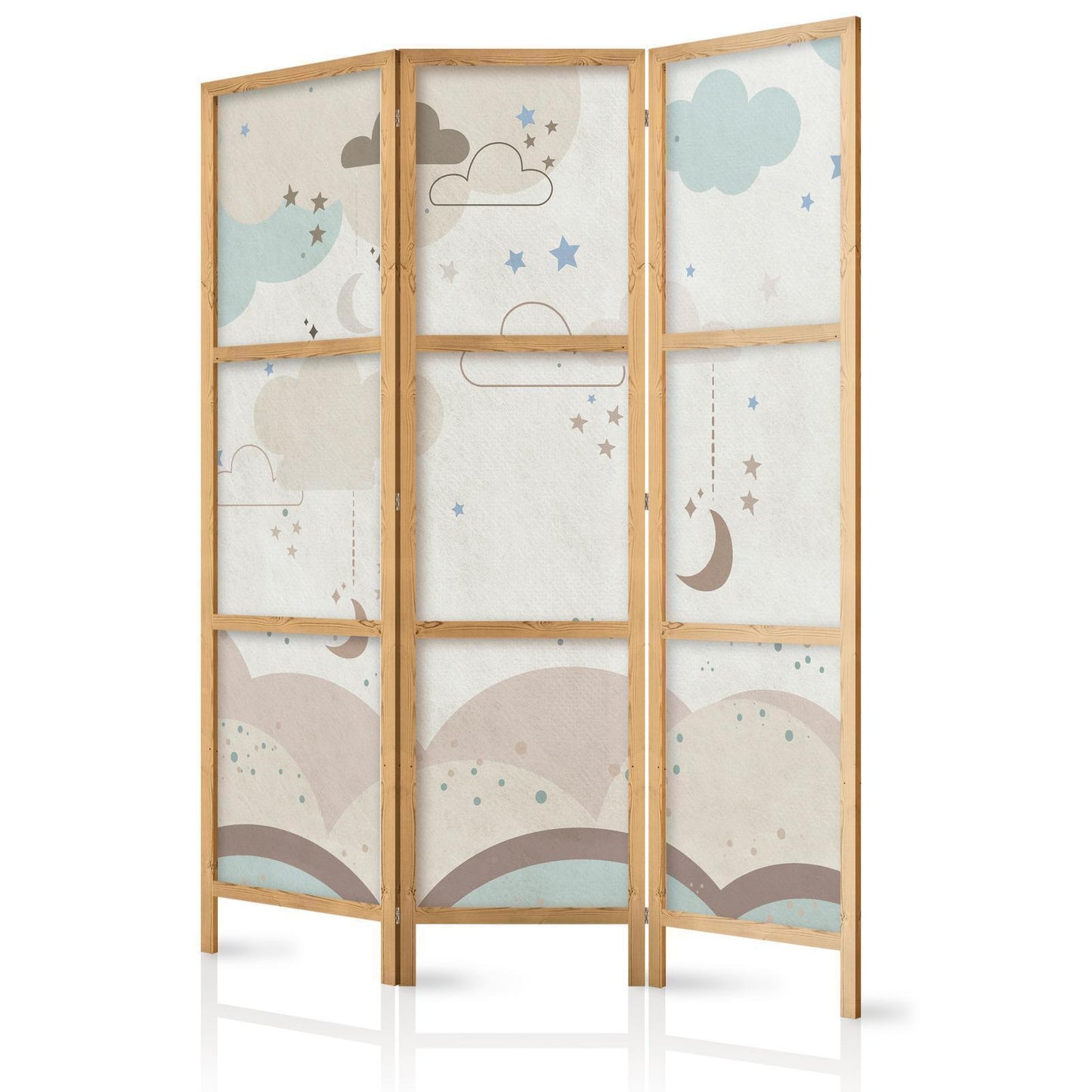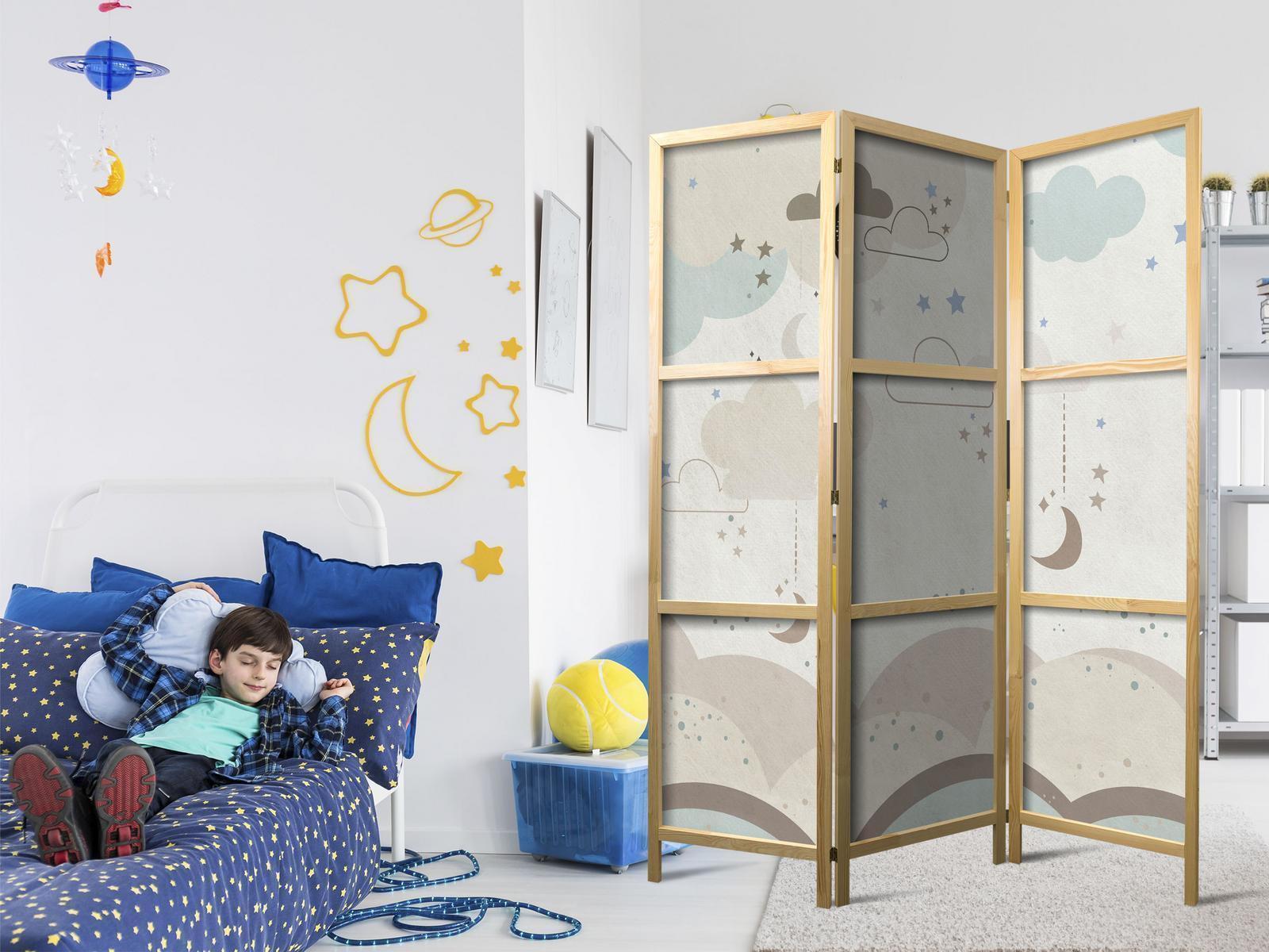 Liegen Ihnen der japanische Stil und die japanische Kultur am Herzen? Aber nicht nahe genug, um dort zu leben oder diesen Teil der Welt zu besuchen? Sind Sie auf der Suche nach einer modernen Dekoration für Ihr Zuhause? Sehen Sie sich die japanischen Paravents an. Dieses vergessene dekorative Element ist sowohl zu Hause als auch im Büro sehr nützlich. Für wenig Geld können Sie Ihre Wohnung fast wie neu einrichten. Japanische Paravents fügen sich perfekt in jeden Einrichtungsstil ein. Ein Paravent "Japanischer Paravent - Cloudy Night Sky - Moons in browns and beiges among numerous clouds and stars on a light background." ist nicht nur eine tolle Dekorationsidee, sondern auch eine praktische Möglichkeit, für Privatsphäre zu sorgen. Müssen Sie aus Ihrem Wohnzimmer zwei Räume machen? Ein japanischer Paravent ist in einem solchen Fall die ideale Lösung. Darüber hinaus unterstreicht das einseitig aufgedruckte Motiv mit Bezug zu Japan Ihr Interesse an der orientalischen Kultur. Wenn Sie in einer Einzimmerwohnung leben, ist japanischer Paravent eine gute Lösung, um die verschiedenen Bereiche voneinander zu trennen. Auf diese Weise schaffen Sie definierte Bereiche für das Esszimmer oder das Wohnzimmer oder sogar trennen Ihre Home-Office-Ecke ab und nutzen ein schönes Objekt, das viel Charme in Ihr Interieur bringt.