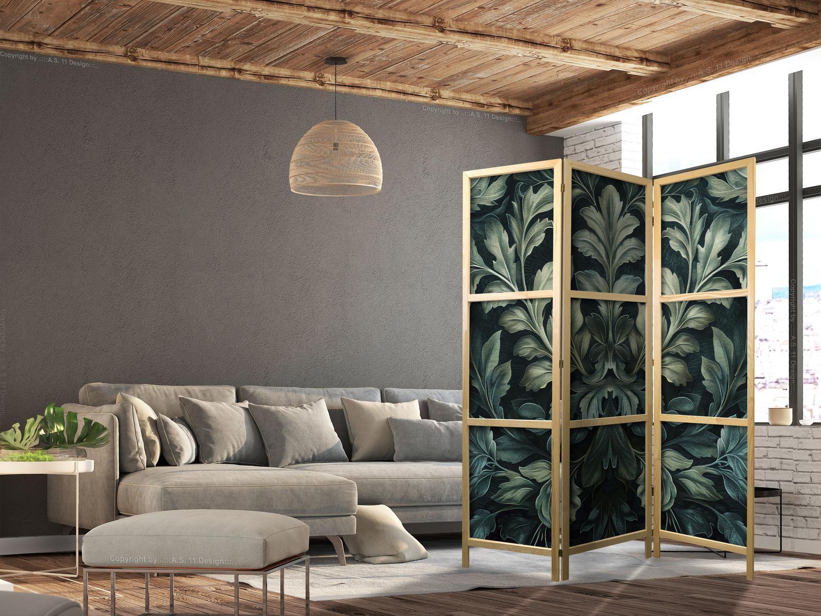 Japanischer Paravent "Japanischer Paravent - Dark Green Victorian Leaves - Botanical Carved Composition"