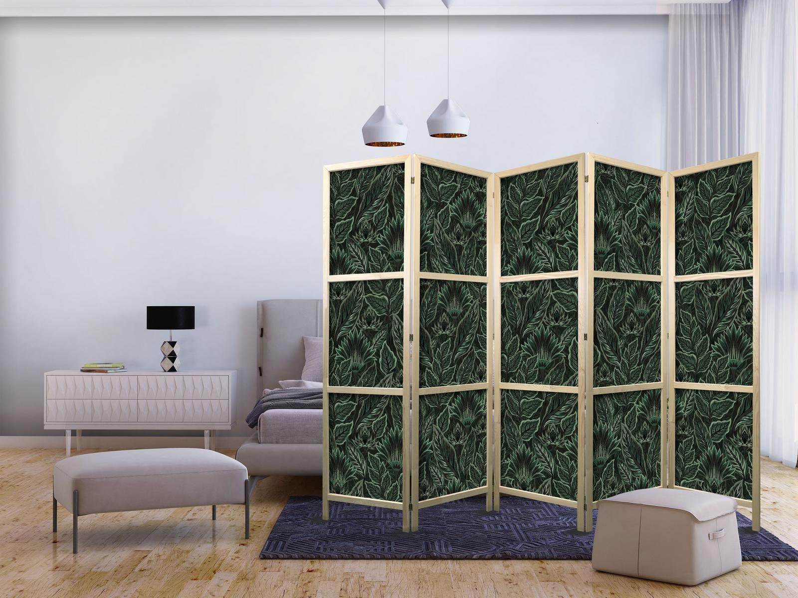 Japanischer Paravent - Dense Vegetation - Botanical Patterns in Illustrative Style Green