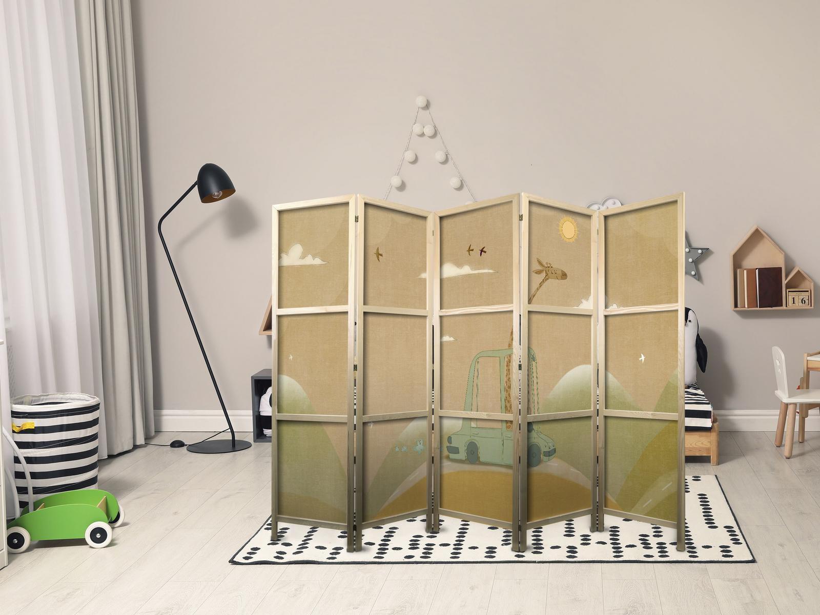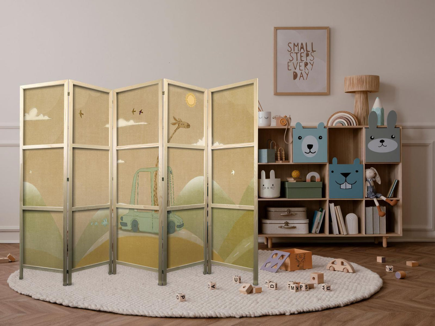 Die asiatischen Paravents aus unserer Kollektion werden auf hochwertiges Vlies gedruckt. Dank des Materials hat sich der sichere Paravent auch im Zimmer eines jungen Orient-Liebhaber bewährt. Asiatische Paravents sind perfekt für ein Restaurant in diesem Stil. Sie können die Bereiche zwischen den Tischen abgrenzen, so dass sich die Gäste wohlfühlen. Japanisches Paravent "Japanischer Paravent - Dreamy Traveler - Giraffe driving a car on a beautiful sunny day." ist auch eine gute Option für Schönheitssalons. Wenn Sie keine Wände bauen wollen, deren Layout Sie nach einer gewissen Zeit langweilen könnte, ist ein japanischer Paravent ideal für Sie! Es trennt die Kundenbereiche und verleiht ihnen Intimität.Details zur Produktsicherheit