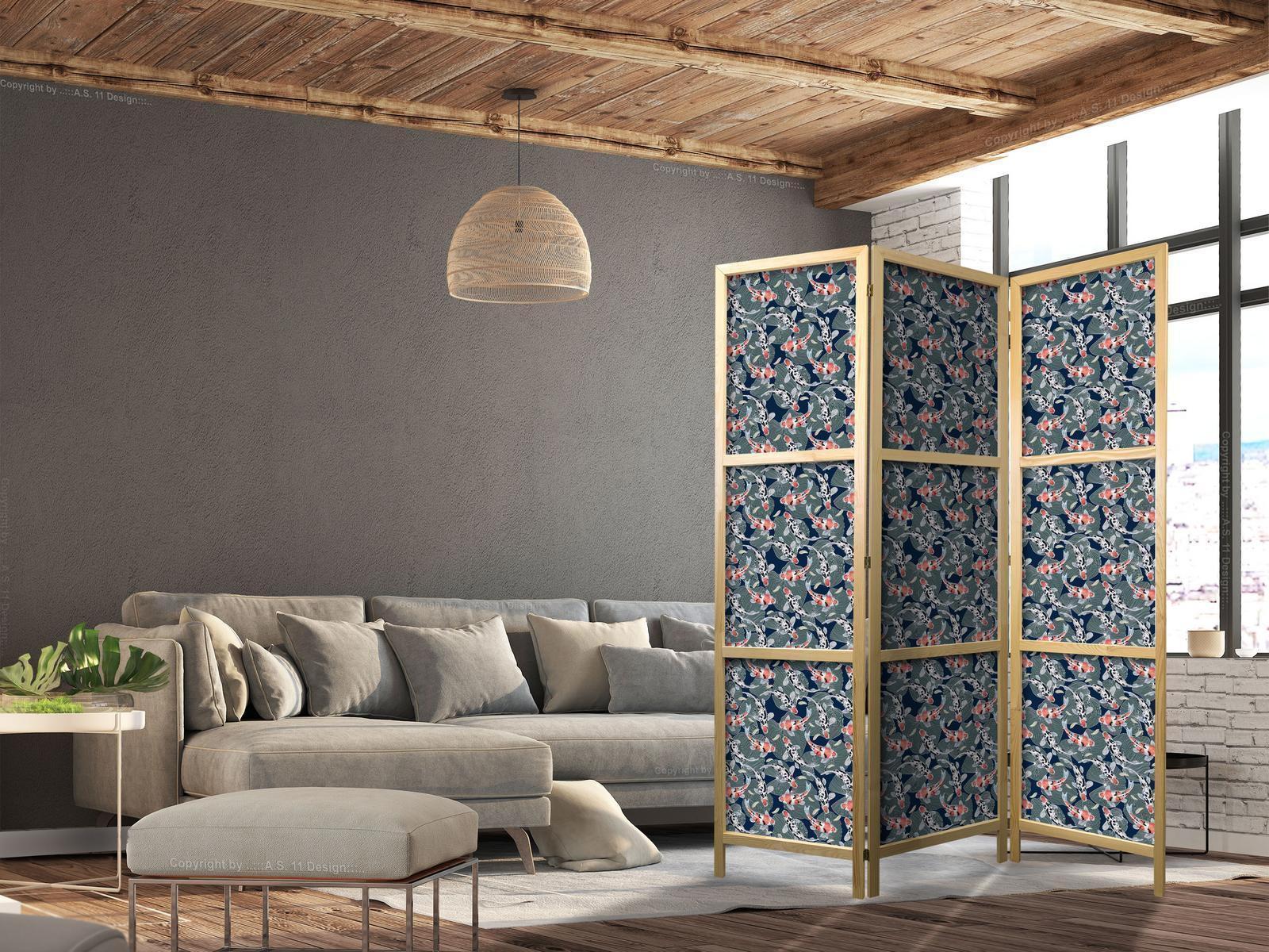 Liegen Ihnen der japanische Stil und die japanische Kultur am Herzen? Aber nicht nahe genug, um dort zu leben oder diesen Teil der Welt zu besuchen? Sind Sie auf der Suche nach einer modernen Dekoration für Ihr Zuhause? Sehen Sie sich die japanischen Paravents an. Dieses vergessene dekorative Element ist sowohl zu Hause als auch im Büro sehr nützlich. Für wenig Geld können Sie Ihre Wohnung fast wie neu einrichten. Japanische Paravents fügen sich perfekt in jeden Einrichtungsstil ein. Ein Paravent "Japanischer Paravent - Fish Among Leaves - Colorful Koi Fish Among Dark Green Water Lily Leaves on a Navy Water Surface" ist nicht nur eine tolle Dekorationsidee, sondern auch eine praktische Möglichkeit, für Privatsphäre zu sorgen. Müssen Sie aus Ihrem Wohnzimmer zwei Räume machen? Ein japanischer Paravent ist in einem solchen Fall die ideale Lösung. Darüber hinaus unterstreicht das einseitig aufgedruckte Motiv mit Bezug zu Japan Ihr Interesse an der orientalischen Kultur. Wenn Sie in einer Einzimmerwohnung leben, ist japanischer Paravent eine gute Lösung, um die verschiedenen Bereiche voneinander zu trennen. Auf diese Weise schaffen Sie definierte Bereiche für das Esszimmer oder das Wohnzimmer oder sogar trennen Ihre Home-Office-Ecke ab und nutzen ein schönes Objekt, das viel Charme in Ihr Interieur bringt.