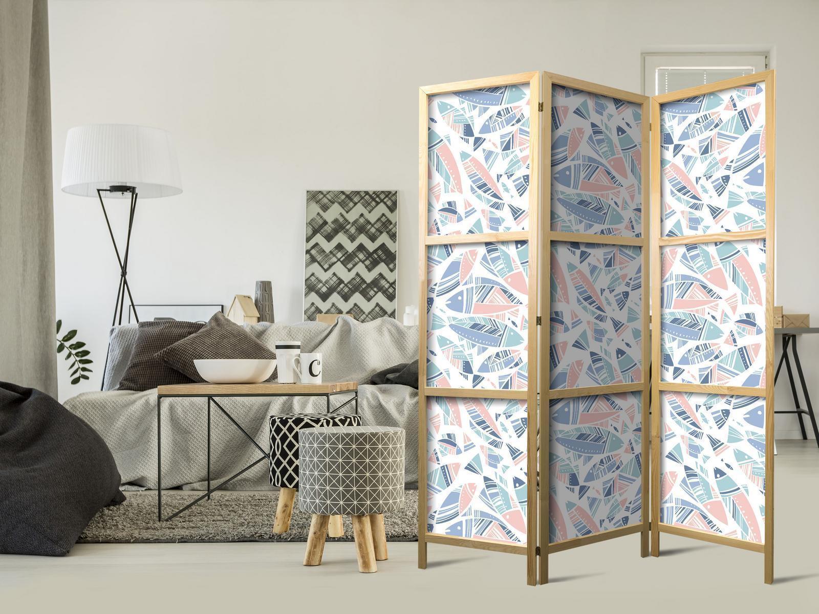 Liegen Ihnen der japanische Stil und die japanische Kultur am Herzen? Aber nicht nahe genug, um dort zu leben oder diesen Teil der Welt zu besuchen? Sind Sie auf der Suche nach einer modernen Dekoration für Ihr Zuhause? Sehen Sie sich die japanischen Paravents an. Dieses vergessene dekorative Element ist sowohl zu Hause als auch im Büro sehr nützlich. Für wenig Geld können Sie Ihre Wohnung fast wie neu einrichten. Japanische Paravents fügen sich perfekt in jeden Einrichtungsstil ein. Ein Paravent "Japanischer Paravent - Fish in Minimalist Style - Fish in Aztec Style in Pastel Color Shades on a White Background" ist nicht nur eine tolle Dekorationsidee, sondern auch eine praktische Möglichkeit, für Privatsphäre zu sorgen. Müssen Sie aus Ihrem Wohnzimmer zwei Räume machen? Ein japanischer Paravent ist in einem solchen Fall die ideale Lösung. Darüber hinaus unterstreicht das einseitig aufgedruckte Motiv mit Bezug zu Japan Ihr Interesse an der orientalischen Kultur. Wenn Sie in einer Einzimmerwohnung leben, ist japanischer Paravent eine gute Lösung, um die verschiedenen Bereiche voneinander zu trennen. Auf diese Weise schaffen Sie definierte Bereiche für das Esszimmer oder das Wohnzimmer oder sogar trennen Ihre Home-Office-Ecke ab und nutzen ein schönes Objekt, das viel Charme in Ihr Interieur bringt.