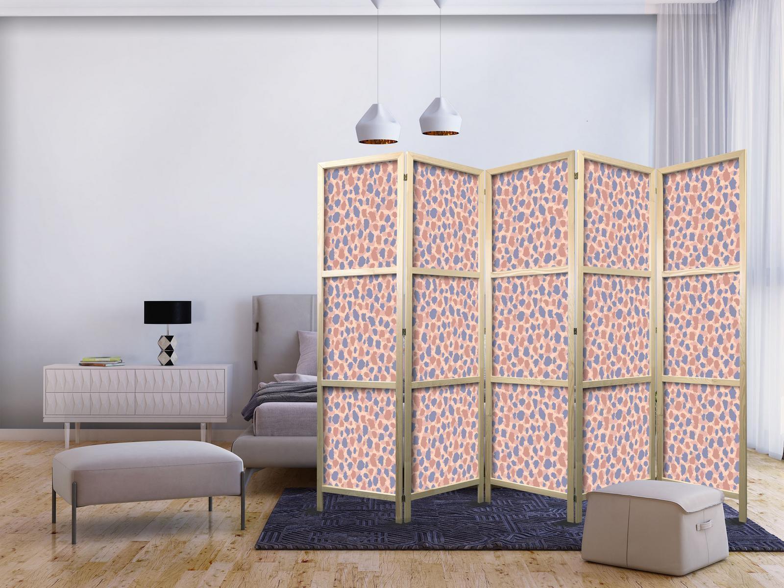 Liegen Ihnen der japanische Stil und die japanische Kultur am Herzen? Aber nicht nahe genug, um dort zu leben oder diesen Teil der Welt zu besuchen? Sind Sie auf der Suche nach einer modernen Dekoration für Ihr Zuhause? Sehen Sie sich die japanischen Paravents an. Dieses vergessene dekorative Element ist sowohl zu Hause als auch im Büro sehr nützlich. Für wenig Geld können Sie Ihre Wohnung fast wie neu einrichten. Japanische Paravents fügen sich perfekt in jeden Einrichtungsstil ein. Ein Paravent "Japanischer Paravent - Giraffe Pattern - Colorful Animal Pattern in Blue-Pink Spots." ist nicht nur eine tolle Dekorationsidee, sondern auch eine praktische Möglichkeit, für Privatsphäre zu sorgen. Müssen Sie aus Ihrem Wohnzimmer zwei Räume machen? Ein japanischer Paravent ist in einem solchen Fall die ideale Lösung. Darüber hinaus unterstreicht das einseitig aufgedruckte Motiv mit Bezug zu Japan Ihr Interesse an der orientalischen Kultur. Wenn Sie in einer Einzimmerwohnung leben, ist japanischer Paravent eine gute Lösung, um die verschiedenen Bereiche voneinander zu trennen. Auf diese Weise schaffen Sie definierte Bereiche für das Esszimmer oder das Wohnzimmer oder sogar trennen Ihre Home-Office-Ecke ab und nutzen ein schönes Objekt, das viel Charme in Ihr Interieur bringt.