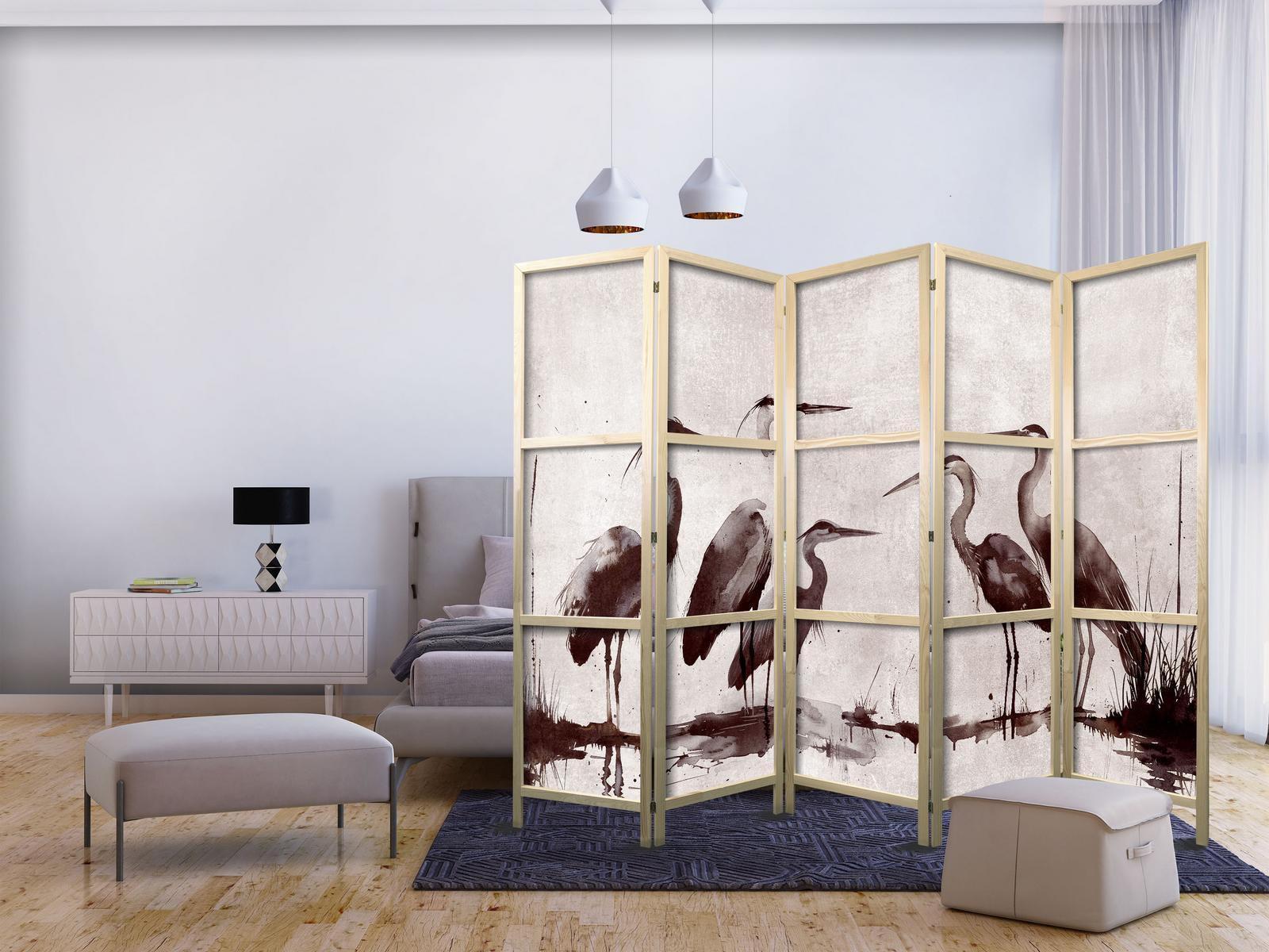 Liegen Ihnen der japanische Stil und die japanische Kultur am Herzen? Aber nicht nahe genug, um dort zu leben oder diesen Teil der Welt zu besuchen? Sind Sie auf der Suche nach einer modernen Dekoration für Ihr Zuhause? Sehen Sie sich die japanischen Paravents an. Dieses vergessene dekorative Element ist sowohl zu Hause als auch im Büro sehr nützlich. Für wenig Geld können Sie Ihre Wohnung fast wie neu einrichten. Japanische Paravents fügen sich perfekt in jeden Einrichtungsstil ein. Ein Paravent "Japanischer Paravent - Herons painted with ink" ist nicht nur eine tolle Dekorationsidee, sondern auch eine praktische Möglichkeit, für Privatsphäre zu sorgen. Müssen Sie aus Ihrem Wohnzimmer zwei Räume machen? Ein japanischer Paravent ist in einem solchen Fall die ideale Lösung. Darüber hinaus unterstreicht das einseitig aufgedruckte Motiv mit Bezug zu Japan Ihr Interesse an der orientalischen Kultur. Wenn Sie in einer Einzimmerwohnung leben, ist japanischer Paravent eine gute Lösung, um die verschiedenen Bereiche voneinander zu trennen. Auf diese Weise schaffen Sie definierte Bereiche für das Esszimmer oder das Wohnzimmer oder sogar trennen Ihre Home-Office-Ecke ab und nutzen ein schönes Objekt, das viel Charme in Ihr Interieur bringt.