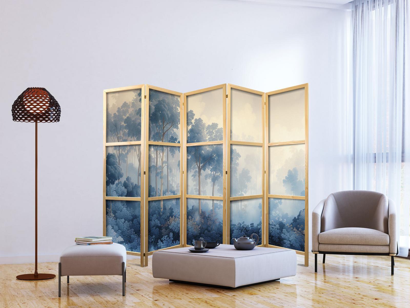 Liegen Ihnen der japanische Stil und die japanische Kultur am Herzen? Aber nicht nahe genug, um dort zu leben oder diesen Teil der Welt zu besuchen? Sind Sie auf der Suche nach einer modernen Dekoration für Ihr Zuhause? Sehen Sie sich die japanischen Paravents an. Dieses vergessene dekorative Element ist sowohl zu Hause als auch im Büro sehr nützlich. Für wenig Geld können Sie Ihre Wohnung fast wie neu einrichten. Japanische Paravents fügen sich perfekt in jeden Einrichtungsstil ein. Ein Paravent "Japanischer Paravent - Landscape with Trees in Illustrative Style - Fairy-Tale Blue Forest" ist nicht nur eine tolle Dekorationsidee, sondern auch eine praktische Möglichkeit, für Privatsphäre zu sorgen. Müssen Sie aus Ihrem Wohnzimmer zwei Räume machen? Ein japanischer Paravent ist in einem solchen Fall die ideale Lösung. Darüber hinaus unterstreicht das einseitig aufgedruckte Motiv mit Bezug zu Japan Ihr Interesse an der orientalischen Kultur. Wenn Sie in einer Einzimmerwohnung leben, ist japanischer Paravent eine gute Lösung, um die verschiedenen Bereiche voneinander zu trennen. Auf diese Weise schaffen Sie definierte Bereiche für das Esszimmer oder das Wohnzimmer oder sogar trennen Ihre Home-Office-Ecke ab und nutzen ein schönes Objekt, das viel Charme in Ihr Interieur bringt.