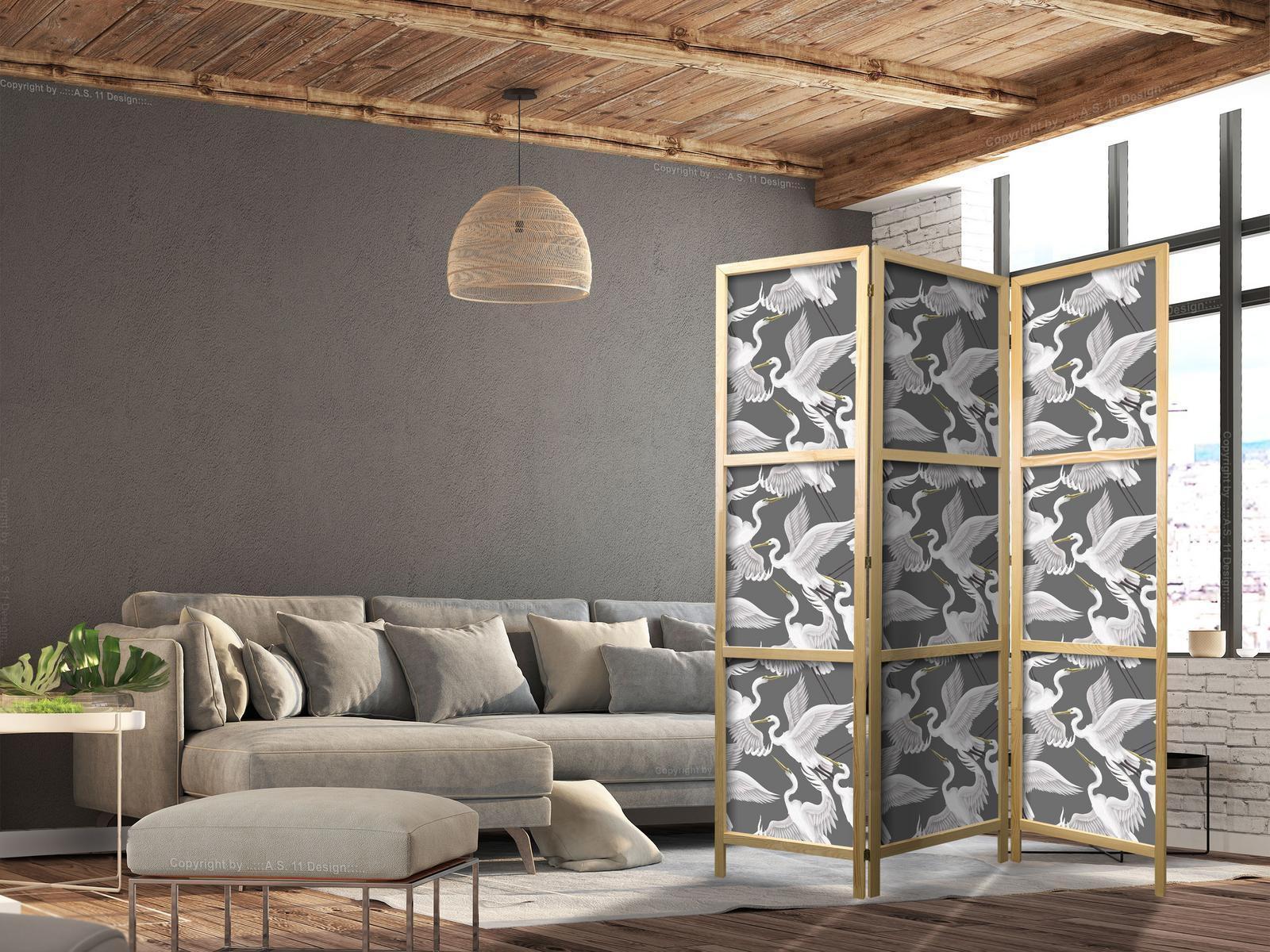 Liegen Ihnen der japanische Stil und die japanische Kultur am Herzen? Aber nicht nahe genug, um dort zu leben oder diesen Teil der Welt zu besuchen? Sind Sie auf der Suche nach einer modernen Dekoration für Ihr Zuhause? Sehen Sie sich die japanischen Paravents an. Dieses vergessene dekorative Element ist sowohl zu Hause als auch im Büro sehr nützlich. Für wenig Geld können Sie Ihre Wohnung fast wie neu einrichten. Japanische Paravents fügen sich perfekt in jeden Einrichtungsstil ein. Ein Paravent "Japanischer Paravent - Pastel birds - a delicate pattern of white and grey herons on a light pink background" ist nicht nur eine tolle Dekorationsidee, sondern auch eine praktische Möglichkeit, für Privatsphäre zu sorgen. Müssen Sie aus Ihrem Wohnzimmer zwei Räume machen? Ein japanischer Paravent ist in einem solchen Fall die ideale Lösung. Darüber hinaus unterstreicht das einseitig aufgedruckte Motiv mit Bezug zu Japan Ihr Interesse an der orientalischen Kultur. Wenn Sie in einer Einzimmerwohnung leben, ist japanischer Paravent eine gute Lösung, um die verschiedenen Bereiche voneinander zu trennen. Auf diese Weise schaffen Sie definierte Bereiche für das Esszimmer oder das Wohnzimmer oder sogar trennen Ihre Home-Office-Ecke ab und nutzen ein schönes Objekt, das viel Charme in Ihr Interieur bringt.