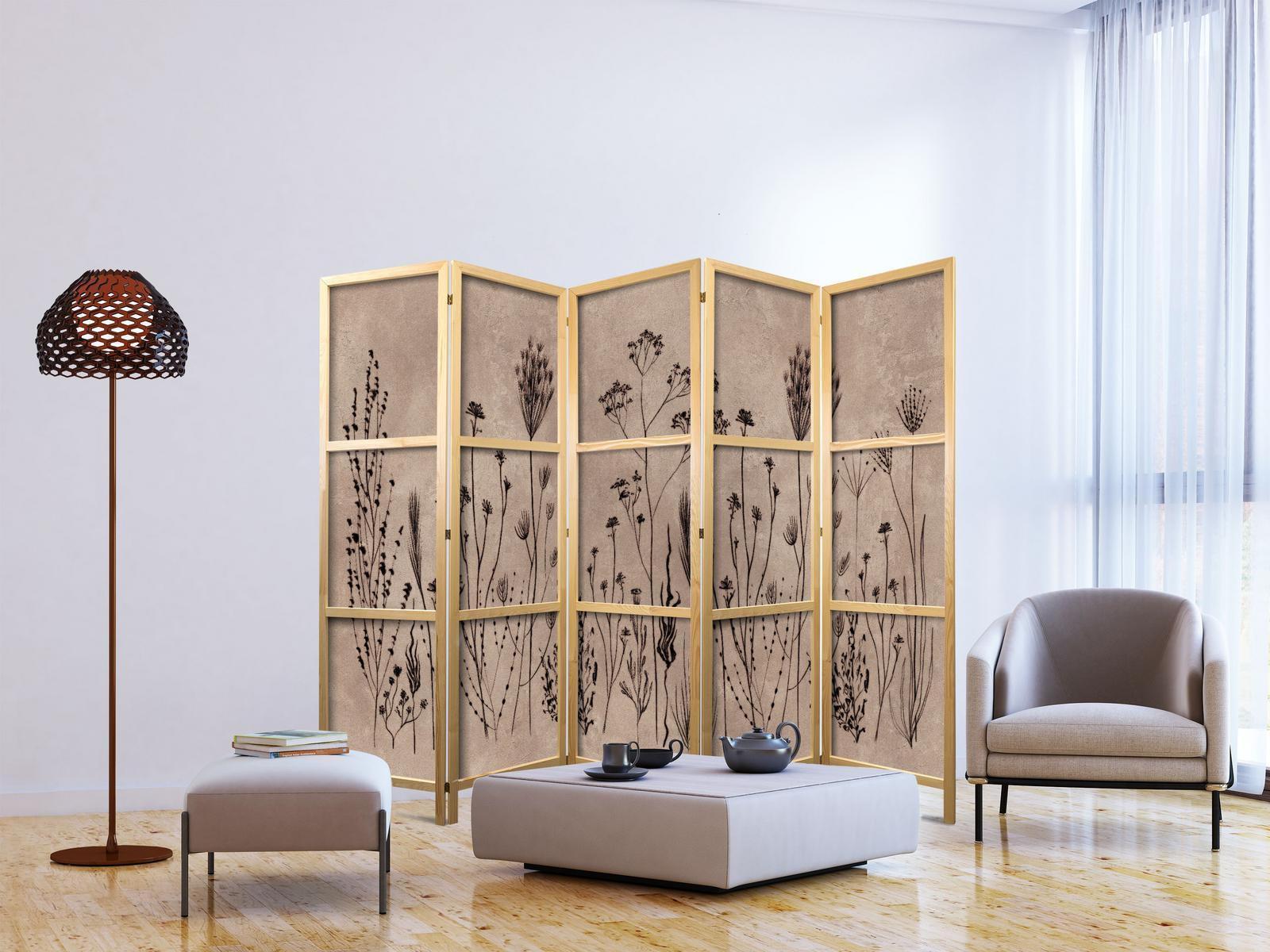 Japanischer Paravent - Plant Vintage - Delicate Field Flowers on a Background in Lime Wash Technique