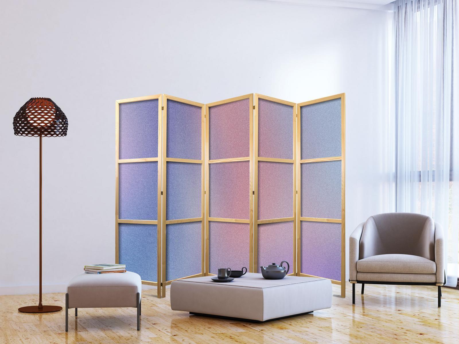 Liegen Ihnen der japanische Stil und die japanische Kultur am Herzen? Aber nicht nahe genug, um dort zu leben oder diesen Teil der Welt zu besuchen? Sind Sie auf der Suche nach einer modernen Dekoration für Ihr Zuhause? Sehen Sie sich die japanischen Paravents an. Dieses vergessene dekorative Element ist sowohl zu Hause als auch im Büro sehr nützlich. Für wenig Geld können Sie Ihre Wohnung fast wie neu einrichten. Japanische Paravents fügen sich perfekt in jeden Einrichtungsstil ein. Ein Paravent "Japanischer Paravent - Rainbow Gradient - Delicate Multicolored Gradient Resembling Mist." ist nicht nur eine tolle Dekorationsidee, sondern auch eine praktische Möglichkeit, für Privatsphäre zu sorgen. Müssen Sie aus Ihrem Wohnzimmer zwei Räume machen? Ein japanischer Paravent ist in einem solchen Fall die ideale Lösung. Darüber hinaus unterstreicht das einseitig aufgedruckte Motiv mit Bezug zu Japan Ihr Interesse an der orientalischen Kultur. Wenn Sie in einer Einzimmerwohnung leben, ist japanischer Paravent eine gute Lösung, um die verschiedenen Bereiche voneinander zu trennen. Auf diese Weise schaffen Sie definierte Bereiche für das Esszimmer oder das Wohnzimmer oder sogar trennen Ihre Home-Office-Ecke ab und nutzen ein schönes Objekt, das viel Charme in Ihr Interieur bringt.