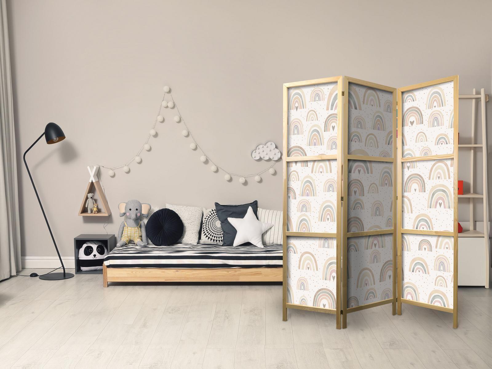 Die asiatischen Paravents aus unserer Kollektion werden auf hochwertiges Vlies gedruckt. Dank des Materials hat sich der sichere Paravent auch im Zimmer eines jungen Orient-Liebhaber bewährt. Asiatische Paravents sind perfekt für ein Restaurant in diesem Stil. Sie können die Bereiche zwischen den Tischen abgrenzen, so dass sich die Gäste wohlfühlen. Japanisches Paravent "Japanischer Paravent - Spring - Pastel Rainbows on a Rainy Day with Hearts." ist auch eine gute Option für Schönheitssalons. Wenn Sie keine Wände bauen wollen, deren Layout Sie nach einer gewissen Zeit langweilen könnte, ist ein japanischer Paravent ideal für Sie! Es trennt die Kundenbereiche und verleiht ihnen Intimität.Details zur Produktsicherheit