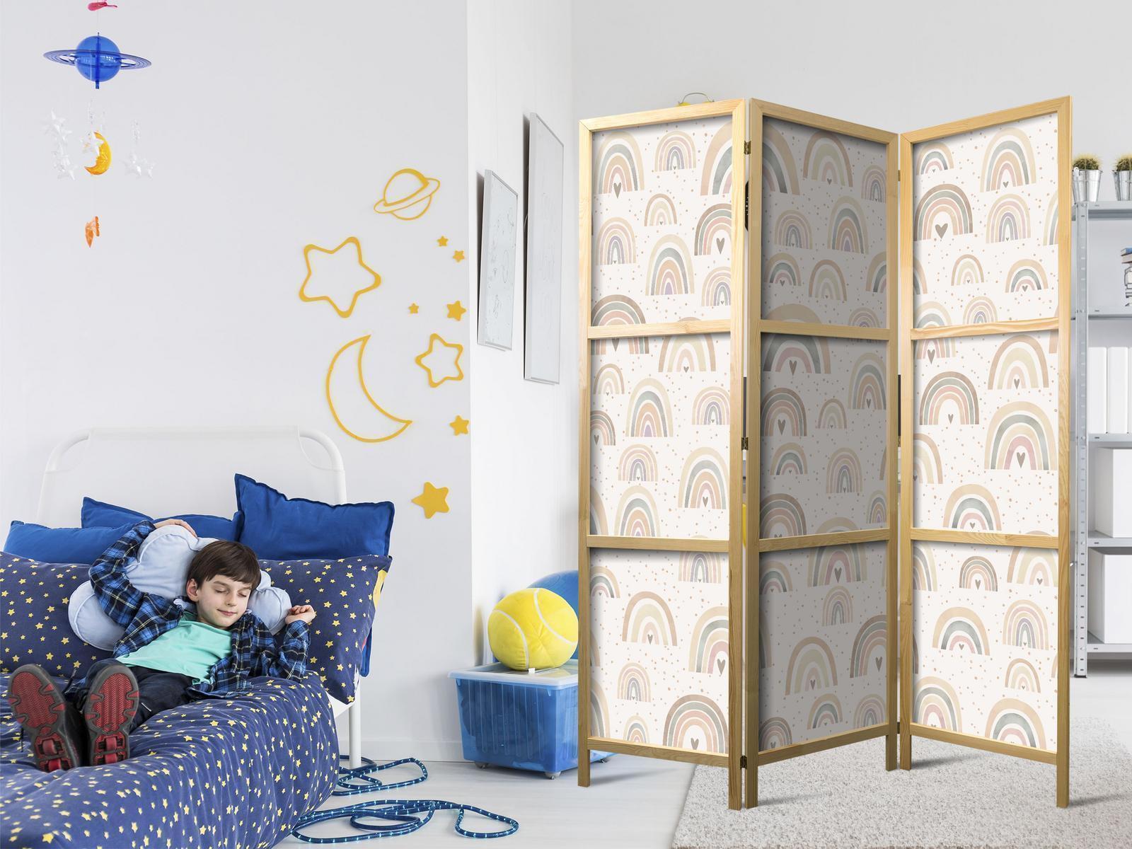 Japanischer Paravent "Japanischer Paravent - Spring - Pastel Rainbows on a Rainy Day with Hearts."