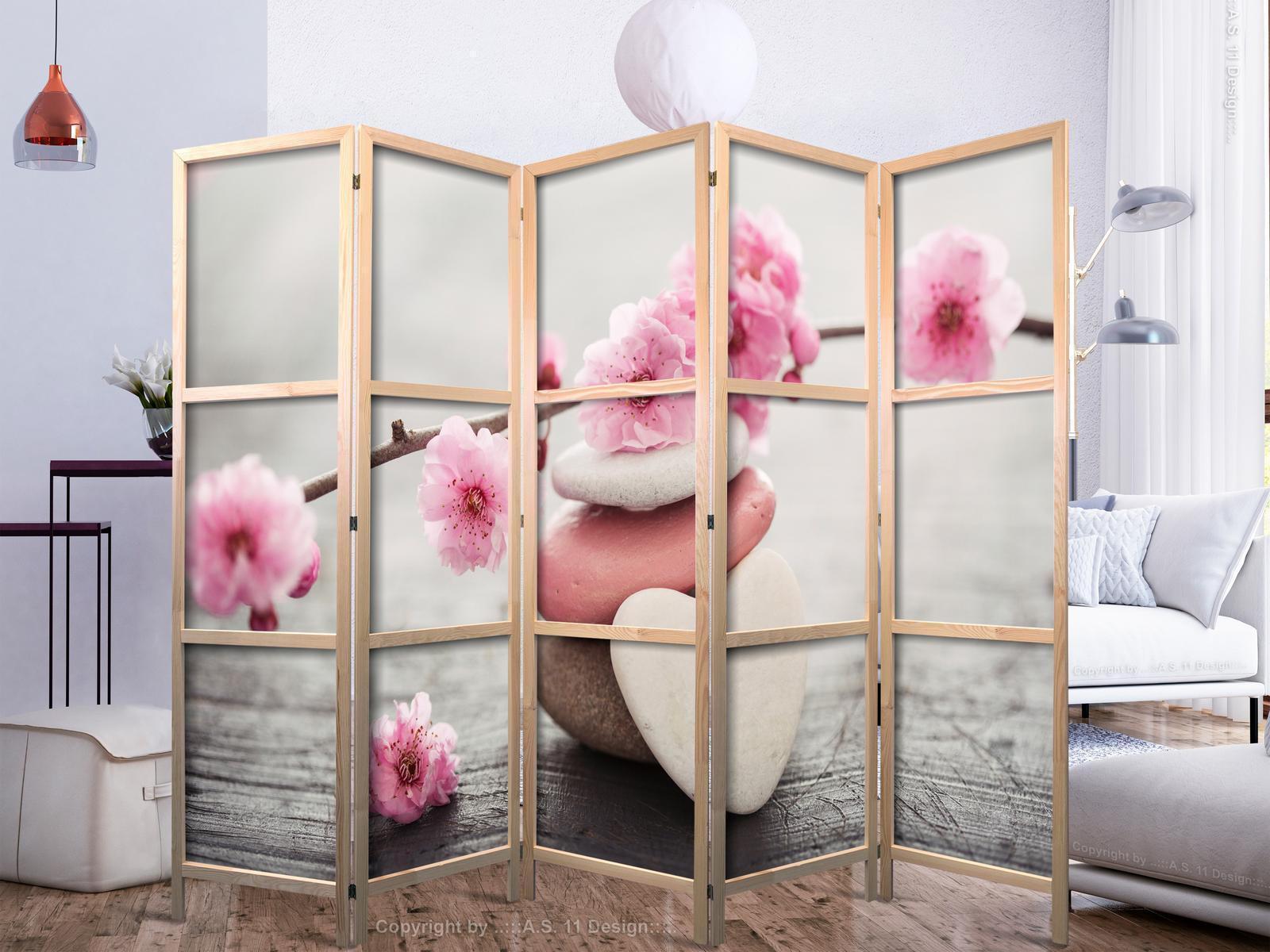 Liegen Ihnen der japanische Stil und die japanische Kultur am Herzen? Aber nicht nahe genug, um dort zu leben oder diesen Teil der Welt zu besuchen? Sind Sie auf der Suche nach einer modernen Dekoration für Ihr Zuhause? Sehen Sie sich die japanischen Paravents an. Dieses vergessene dekorative Element ist sowohl zu Hause als auch im Büro sehr nützlich. Für wenig Geld können Sie Ihre Wohnung fast wie neu einrichten. Japanische Paravents fügen sich perfekt in jeden Einrichtungsstil ein. Ein Paravent "Japanischer Paravent - Stones of Love II" ist nicht nur eine tolle Dekorationsidee, sondern auch eine praktische Möglichkeit, für Privatsphäre zu sorgen. Müssen Sie aus Ihrem Wohnzimmer zwei Räume machen? Ein japanischer Paravent ist in einem solchen Fall die ideale Lösung. Darüber hinaus unterstreicht das einseitig aufgedruckte Motiv mit Bezug zu Japan Ihr Interesse an der orientalischen Kultur. Wenn Sie in einer Einzimmerwohnung leben, ist japanischer Paravent eine gute Lösung, um die verschiedenen Bereiche voneinander zu trennen. Auf diese Weise schaffen Sie definierte Bereiche für das Esszimmer oder das Wohnzimmer oder sogar trennen Ihre Home-Office-Ecke ab und nutzen ein schönes Objekt, das viel Charme in Ihr Interieur bringt.