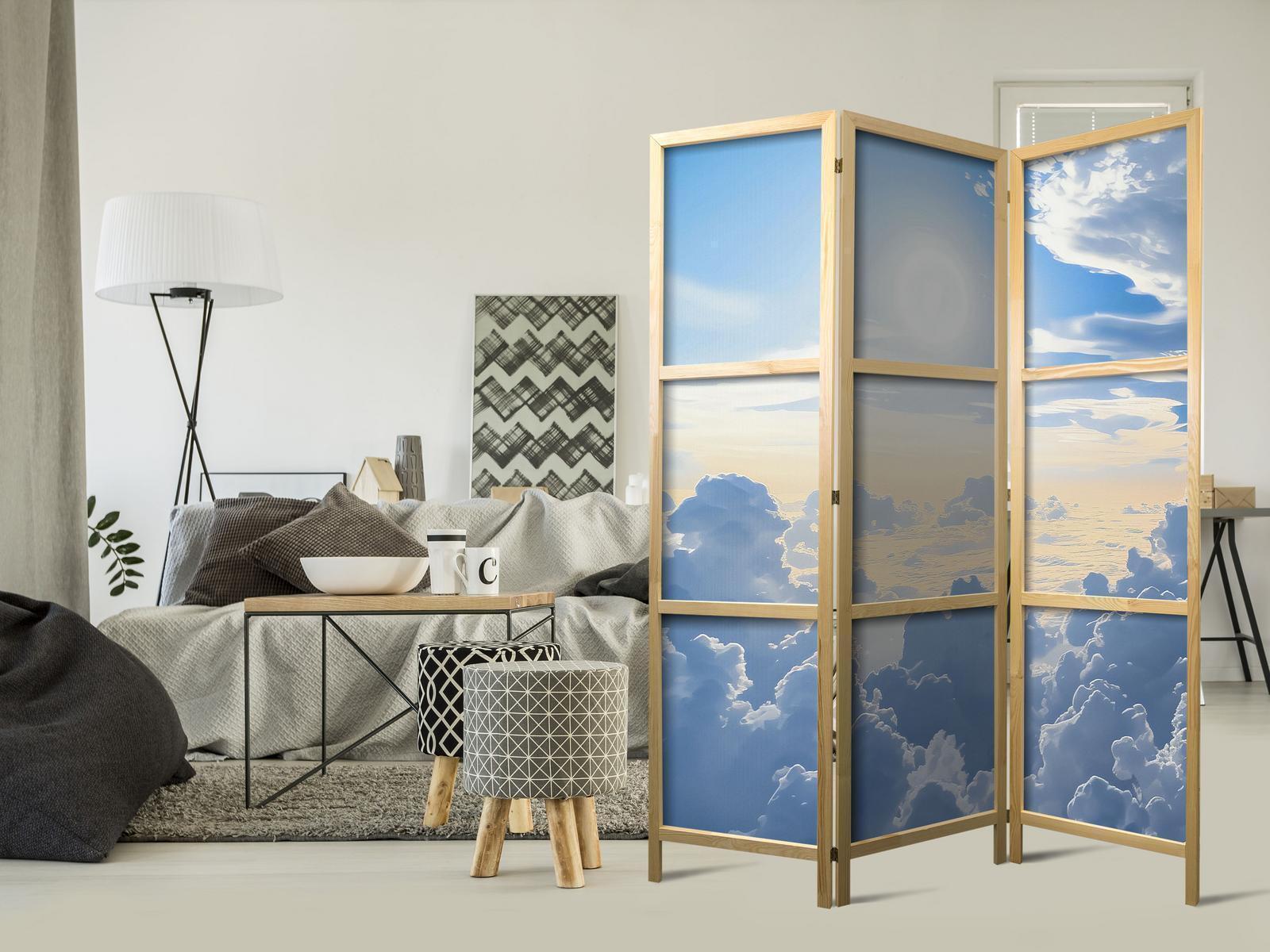 Liegen Ihnen der japanische Stil und die japanische Kultur am Herzen? Aber nicht nahe genug, um dort zu leben oder diesen Teil der Welt zu besuchen? Sind Sie auf der Suche nach einer modernen Dekoration für Ihr Zuhause? Sehen Sie sich die japanischen Paravents an. Dieses vergessene dekorative Element ist sowohl zu Hause als auch im Büro sehr nützlich. Für wenig Geld können Sie Ihre Wohnung fast wie neu einrichten. Japanische Paravents fügen sich perfekt in jeden Einrichtungsstil ein. Ein Paravent "Japanischer Paravent - Symphony of Light: Sun and Clouds Collaborating on a Beautiful Sky" ist nicht nur eine tolle Dekorationsidee, sondern auch eine praktische Möglichkeit, für Privatsphäre zu sorgen. Müssen Sie aus Ihrem Wohnzimmer zwei Räume machen? Ein japanischer Paravent ist in einem solchen Fall die ideale Lösung. Darüber hinaus unterstreicht das einseitig aufgedruckte Motiv mit Bezug zu Japan Ihr Interesse an der orientalischen Kultur. Wenn Sie in einer Einzimmerwohnung leben, ist japanischer Paravent eine gute Lösung, um die verschiedenen Bereiche voneinander zu trennen. Auf diese Weise schaffen Sie definierte Bereiche für das Esszimmer oder das Wohnzimmer oder sogar trennen Ihre Home-Office-Ecke ab und nutzen ein schönes Objekt, das viel Charme in Ihr Interieur bringt.