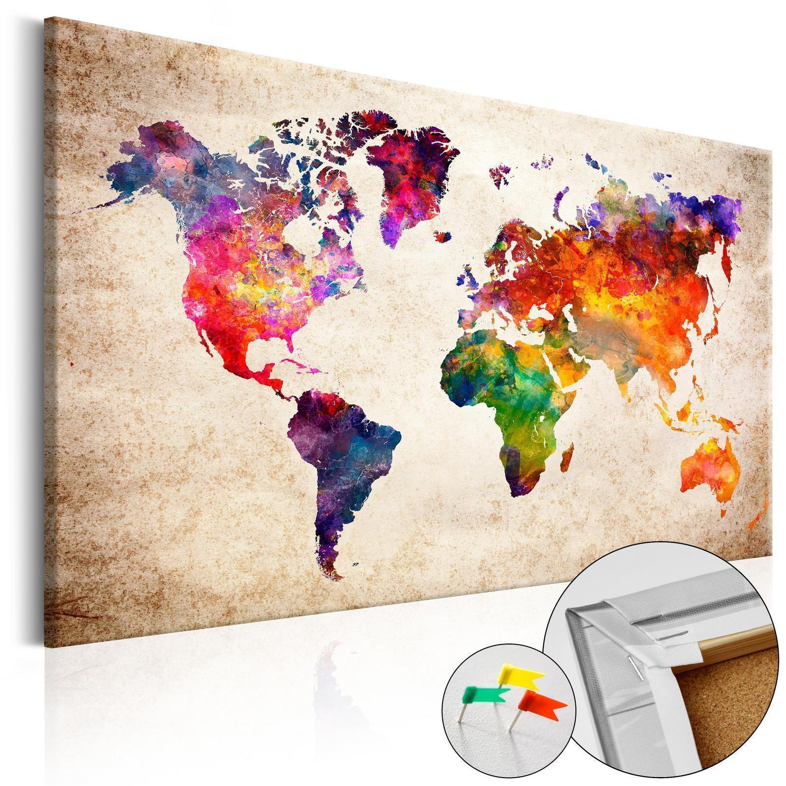 Pinnwand Bild "Korkbild - Colourful Universe" ist ein Produkt für Personen die originelle Schmuckstücke für die Wand suchen. Ökologisches Material und interessantes Muster "Korkbild - Colourful Universe" verursachen, dass die einfache Korktafel sich in ein stilvolles Accessoire verändert. Zu den Bildern auf Korken kann man Reißzwecken anheften und die besuchten Orte auf der Landkarte markieren oder Notizen anheften. Das Bild "Korkbild - Colourful Universe" auf Kork ist viel leichter als die traditionellen Wanddekorationen. Dank dem können die dekorativen Korktafeln an jedem Platz in Deiner Wohnung oder Büro gehängt werden. Die Leinwand mit dem Ausdruck wird auf die Korktafel angebracht. Dank dem, charakterisiert sich der Aufdruck mit deutlichen Farben und gibt kleinste Details wieder. Stecke die Reißzwecken oder Notizen an und kreire Dein individuelles Muster auf Deiner Wand! Die Korklandkarte ist eine exzellente Idee als Geschenk für Reiseliebhaber!