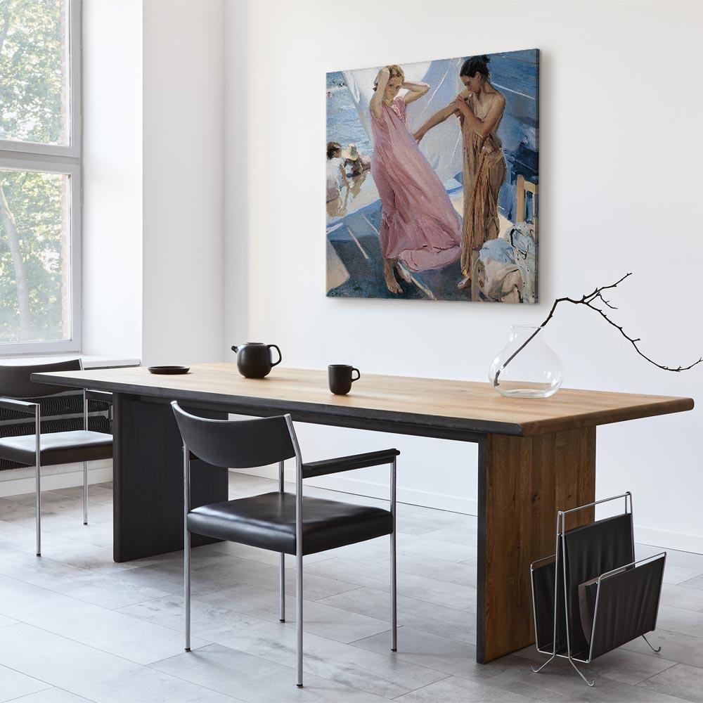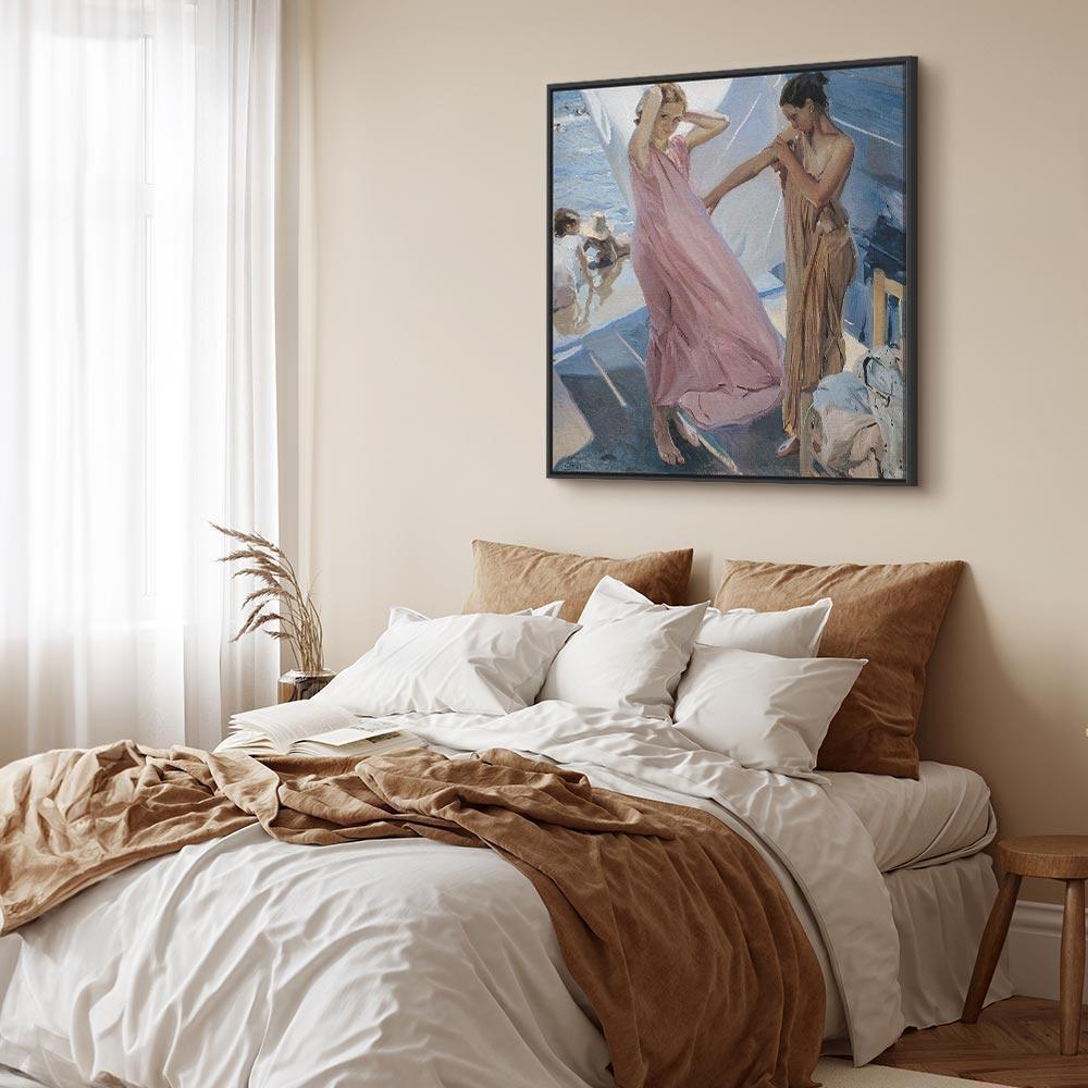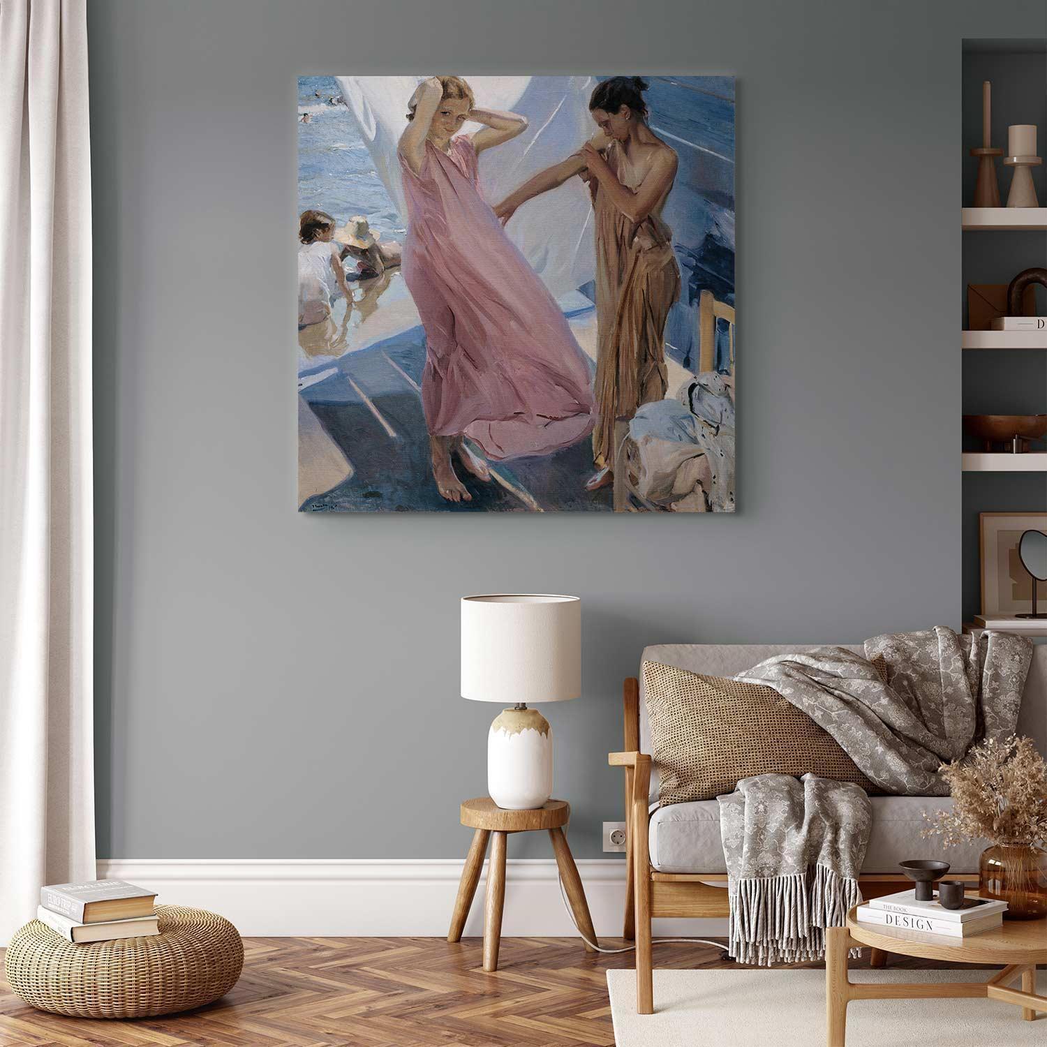 Unsere Bilder sind sicher und geruchsneutral und eignen sich daher ideal für Kinderzimmer. Die Größe wird Ihr Kind sicher beeindrucken! Bilder für Schlafzimmer sind ein echter Blickfang, genauso wie Bilder Wohnzimmer. Dekorieren Sie die Wände in Ihrem privaten Bereich mit einem Bild "Leinwandbild - Joaquín Sorolla y Bastida – After Bathing, Valencia". Wir empfehlen Bilder für Schlafzimmer , die Sie beruhigen und in eine erholsame Stimmung versetzen. Bilder aus unserer Kollektion werden Ihrem Interieur eine außergewöhnliche Atmosphäre verleihen. Unabhängig vom Raum schaffen auch Kunst Bilder eine gemütliche Atmosphäre für die Gäste. Massive Holzrahmen unterstreichen den einzigartigen Charakter der Schlafzimmerbilder, und ein schneller und sicherer Versand ist ein weiterer Vorteil, der für diese Wanddekorationen spricht Leinwandbilder sind in fünf Varianten erhältlich, sodass jeder Kunde die perfekte Option für seine Bedürfnisse findet.Die Variante auf Strukturleinwand (Standard) ist eine universelle Dekoration, die das Haushaltsbudget nicht belastet.Für Liebhaber edler Materialien ist ein Druck auf italienischer Leinwand aus 100 % Baumwolle die ideale Wahl.Und für Fans der Malerei? Hier überzeugt die außergewöhnliche Premium-Print-Technik – ein Bild, das auf Strukturleinwand gedruckt und von Hand mit einer Schicht transparenten Gels überzogen wird, die die Pinselstriche eines Künstlers imitiert – ein „wie gemalt“-Effekt, aber zu einem günstigeren Preis.Die Variante im soliden Holzrahmen des Typs American Box mit Tiefeneffekt (zwei Rahmenfarben zur Auswahl, Motiv auf Strukturleinwand gedruckt) bietet eine klassische Lösung in neuer Form.Das Akustikbild (Druck auf Strukturleinwand mit einer zusätzlichen Schicht schallabsorbierendem Schaumstoff) ist dagegen ein Volltreffer für alle, die Ästhetik mit Funktionalität verbinden möchten.Zwar sind die beiden letzten Optionen nur für bestimmte Größen von einteiligen Bildern verfügbar, doch bei allen Varianten legen wir GRATIS die erforderliche Anzahl an Haken und Nägeln zur Montage bei.