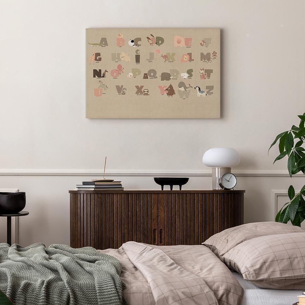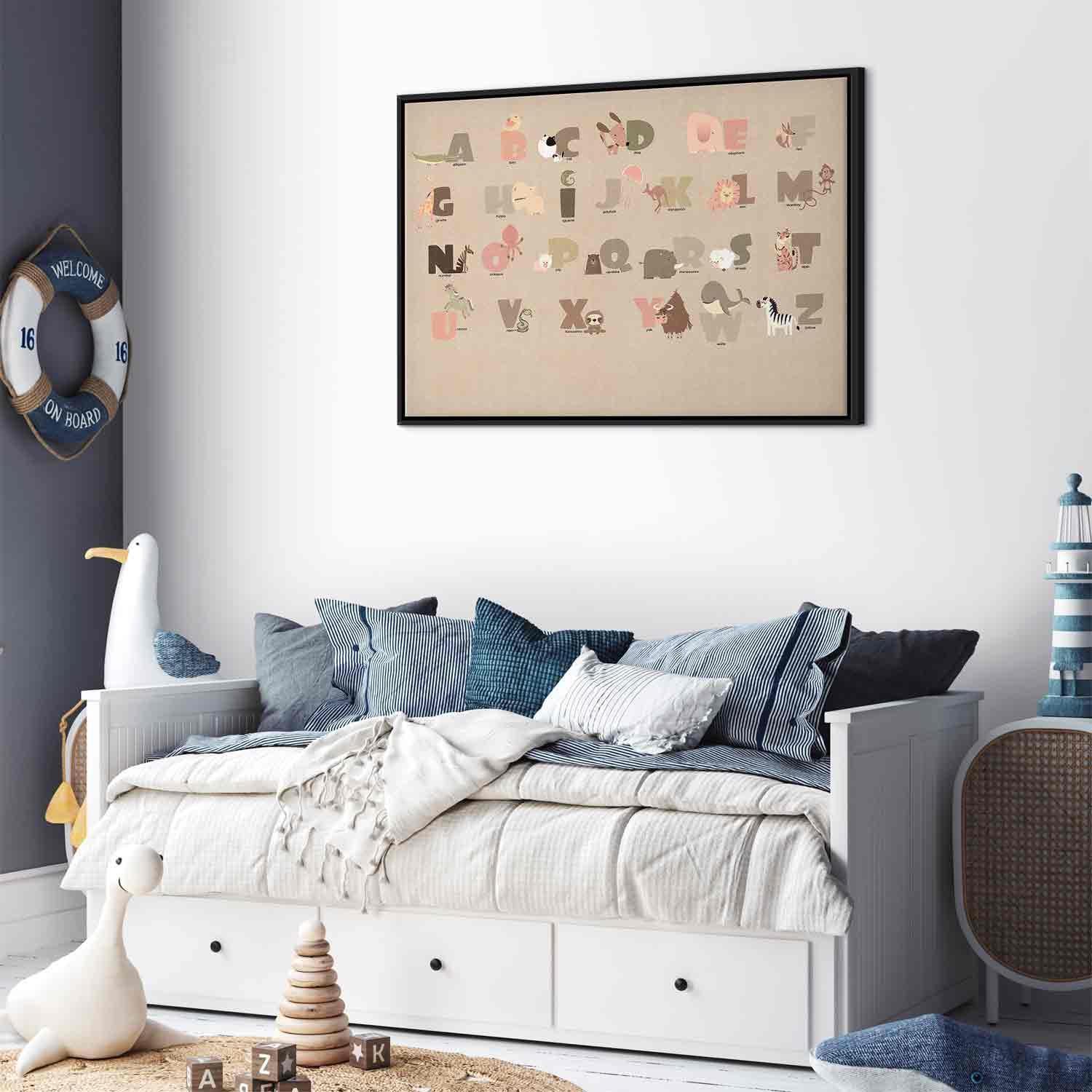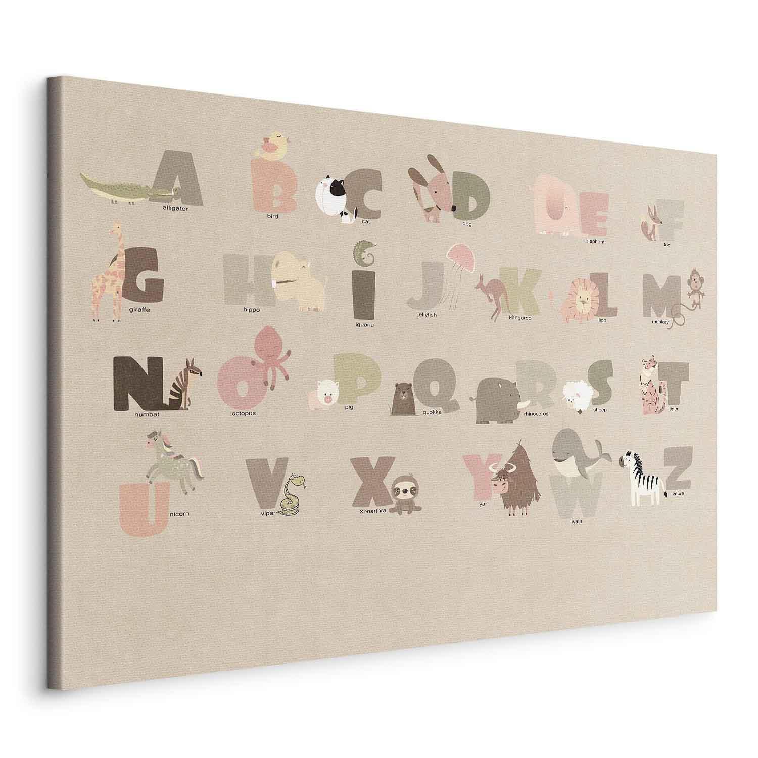 Unsere Bilder sind sicher und geruchsneutral und eignen sich daher ideal für Kinderzimmer. Die Größe wird Ihr Kind sicher beeindrucken! Bilder für Schlafzimmer sind ein echter Blickfang, genauso wie Bilder Wohnzimmer. Dekorieren Sie die Wände in Ihrem privaten Bereich mit einem Bild "Leinwandbild - Alphabet at the Zoo - Joyful Animals and Their Names on a Beige Background". Wir empfehlen Bilder für Schlafzimmer , die Sie beruhigen und in eine erholsame Stimmung versetzen. Bilder aus unserer Kollektion werden Ihrem Interieur eine außergewöhnliche Atmosphäre verleihen. Unabhängig vom Raum schaffen auch Kunst Bilder eine gemütliche Atmosphäre für die Gäste. Massive Holzrahmen unterstreichen den einzigartigen Charakter der Schlafzimmerbilder, und ein schneller und sicherer Versand ist ein weiterer Vorteil, der für diese Wanddekorationen spricht Leinwandbilder sind in fünf Varianten erhältlich, sodass jeder Kunde die perfekte Option für seine Bedürfnisse findet.Die Variante auf Strukturleinwand (Standard) ist eine universelle Dekoration, die das Haushaltsbudget nicht belastet.Für Liebhaber edler Materialien ist ein Druck auf italienischer Leinwand aus 100 % Baumwolle die ideale Wahl.Und für Fans der Malerei? Hier überzeugt die außergewöhnliche Premium-Print-Technik – ein Bild, das auf Strukturleinwand gedruckt und von Hand mit einer Schicht transparenten Gels überzogen wird, die die Pinselstriche eines Künstlers imitiert – ein „wie gemalt“-Effekt, aber zu einem günstigeren Preis.Die Variante im soliden Holzrahmen des Typs American Box mit Tiefeneffekt (zwei Rahmenfarben zur Auswahl, Motiv auf Strukturleinwand gedruckt) bietet eine klassische Lösung in neuer Form.Das Akustikbild (Druck auf Strukturleinwand mit einer zusätzlichen Schicht schallabsorbierendem Schaumstoff) ist dagegen ein Volltreffer für alle, die Ästhetik mit Funktionalität verbinden möchten.Zwar sind die beiden letzten Optionen nur für bestimmte Größen von einteiligen Bildern verfügbar, doch bei allen Varianten legen wir GRATIS die erforderliche Anzahl an Haken und Nägeln zur Montage bei.