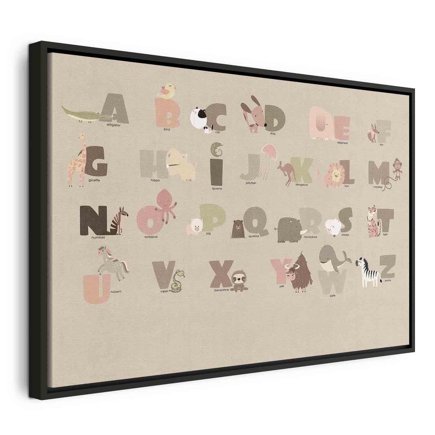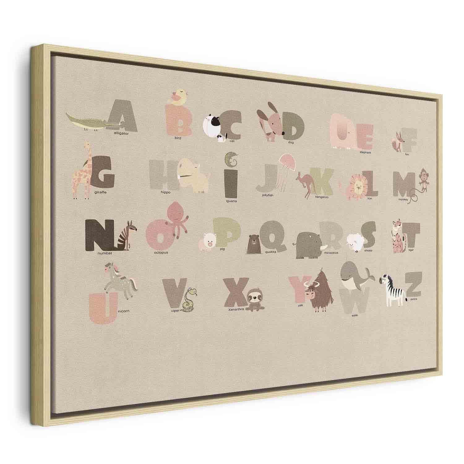 Leinwandbild - Alphabet at the Zoo - Joyful Animals and Their Names on a Beige Background