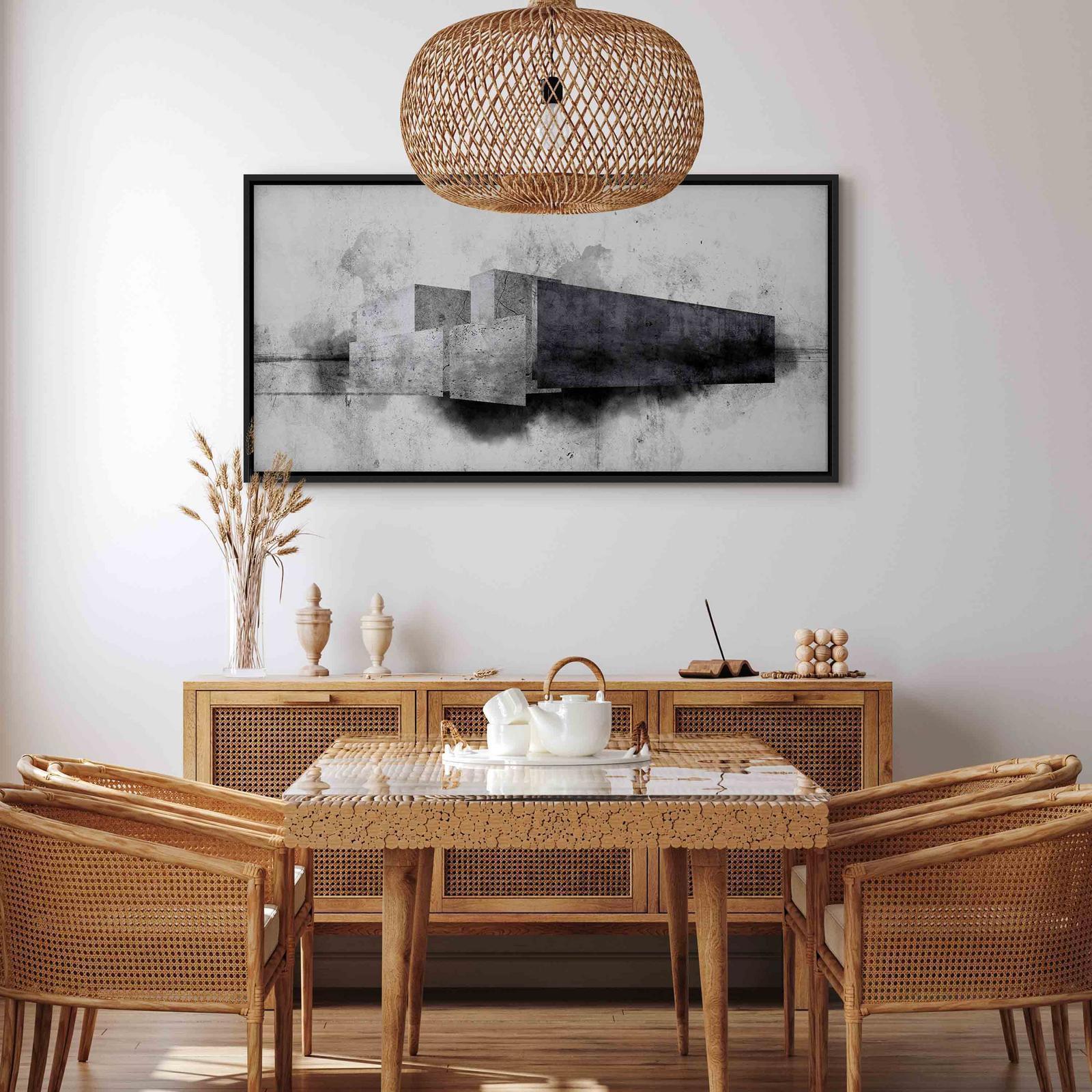 Das Motiv kombiniert architektonische Elemente mit künstlerischer Variation – ein spannendes Spiel aus Perspektiven, Licht und Schatten. Ideal geeignet für Wohnzimmer, Arbeitszimmer oder moderne Büros.