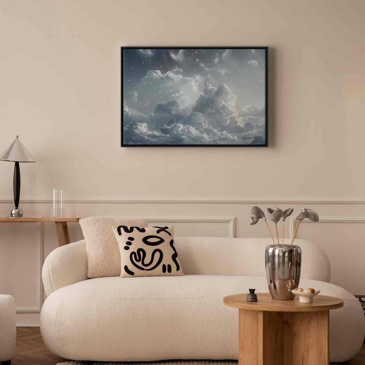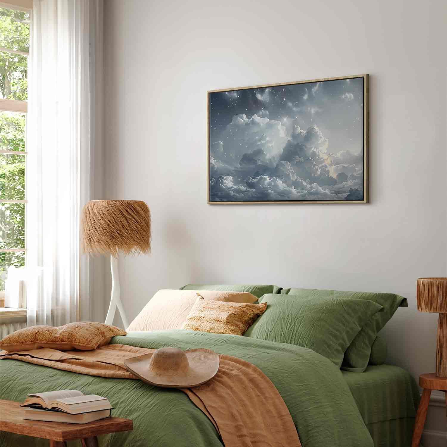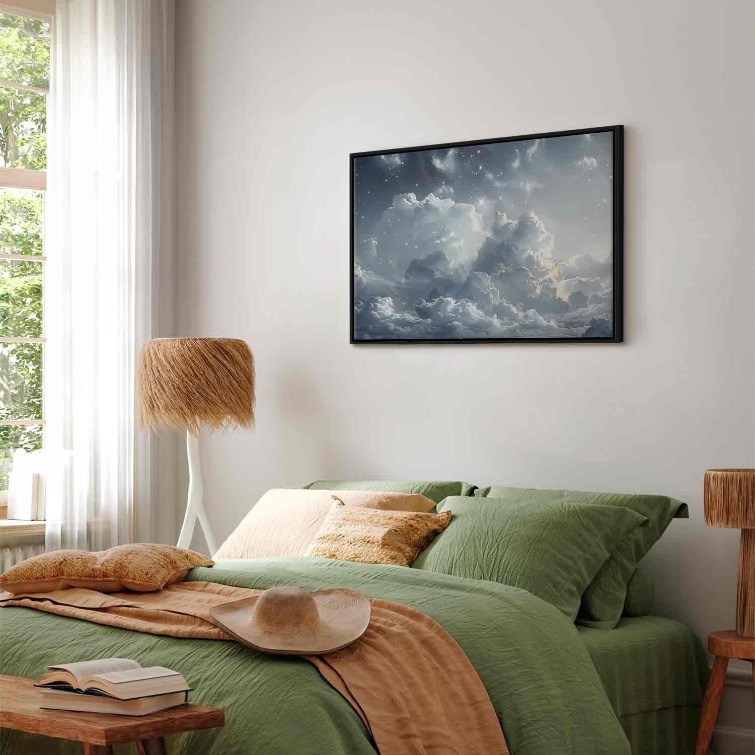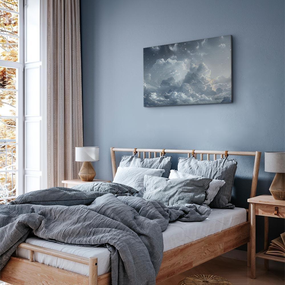 Unsere Bilder sind sicher und geruchsneutral und eignen sich daher ideal für Kinderzimmer. Die Größe wird Ihr Kind sicher beeindrucken! Bilder für Schlafzimmer sind ein echter Blickfang, genauso wie Bilder Wohnzimmer. Dekorieren Sie die Wände in Ihrem privaten Bereich mit einem Bild "Leinwandbild - Astral Calm: Stars Scattered Over Delicate Clouds". Wir empfehlen Bilder für Schlafzimmer , die Sie beruhigen und in eine erholsame Stimmung versetzen. Bilder aus unserer Kollektion werden Ihrem Interieur eine außergewöhnliche Atmosphäre verleihen. Unabhängig vom Raum schaffen auch Kunst Bilder eine gemütliche Atmosphäre für die Gäste. Massive Holzrahmen unterstreichen den einzigartigen Charakter der Schlafzimmerbilder, und ein schneller und sicherer Versand ist ein weiterer Vorteil, der für diese Wanddekorationen spricht Leinwandbilder sind in fünf Varianten erhältlich, sodass jeder Kunde die perfekte Option für seine Bedürfnisse findet.Die Variante auf Strukturleinwand (Standard) ist eine universelle Dekoration, die das Haushaltsbudget nicht belastet.Für Liebhaber edler Materialien ist ein Druck auf italienischer Leinwand aus 100 % Baumwolle die ideale Wahl.Und für Fans der Malerei? Hier überzeugt die außergewöhnliche Premium-Print-Technik – ein Bild, das auf Strukturleinwand gedruckt und von Hand mit einer Schicht transparenten Gels überzogen wird, die die Pinselstriche eines Künstlers imitiert – ein „wie gemalt“-Effekt, aber zu einem günstigeren Preis.Die Variante im soliden Holzrahmen des Typs American Box mit Tiefeneffekt (zwei Rahmenfarben zur Auswahl, Motiv auf Strukturleinwand gedruckt) bietet eine klassische Lösung in neuer Form.Das Akustikbild (Druck auf Strukturleinwand mit einer zusätzlichen Schicht schallabsorbierendem Schaumstoff) ist dagegen ein Volltreffer für alle, die Ästhetik mit Funktionalität verbinden möchten.Zwar sind die beiden letzten Optionen nur für bestimmte Größen von einteiligen Bildern verfügbar, doch bei allen Varianten legen wir GRATIS die erforderliche Anzahl an Haken und Nägeln zur Montage bei.