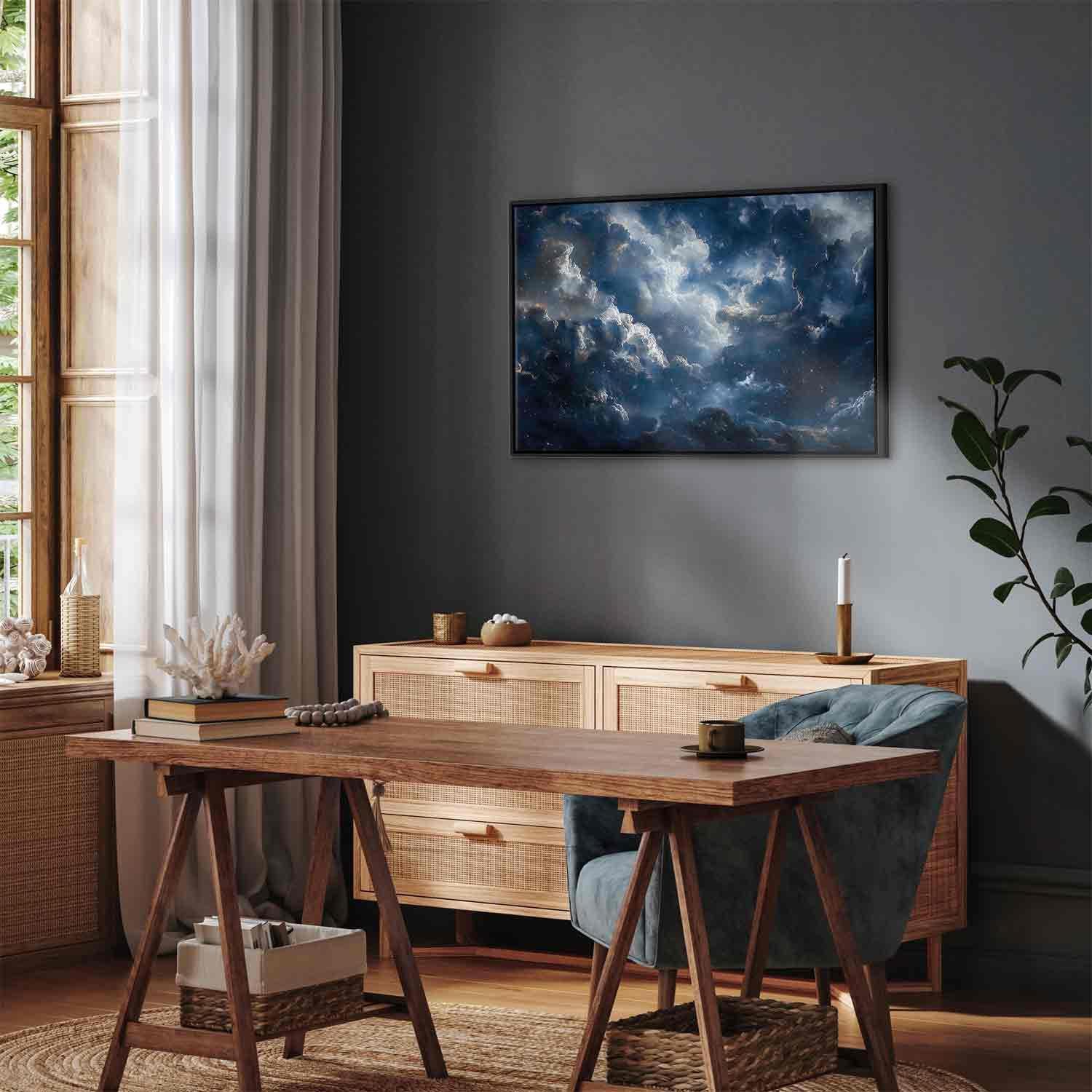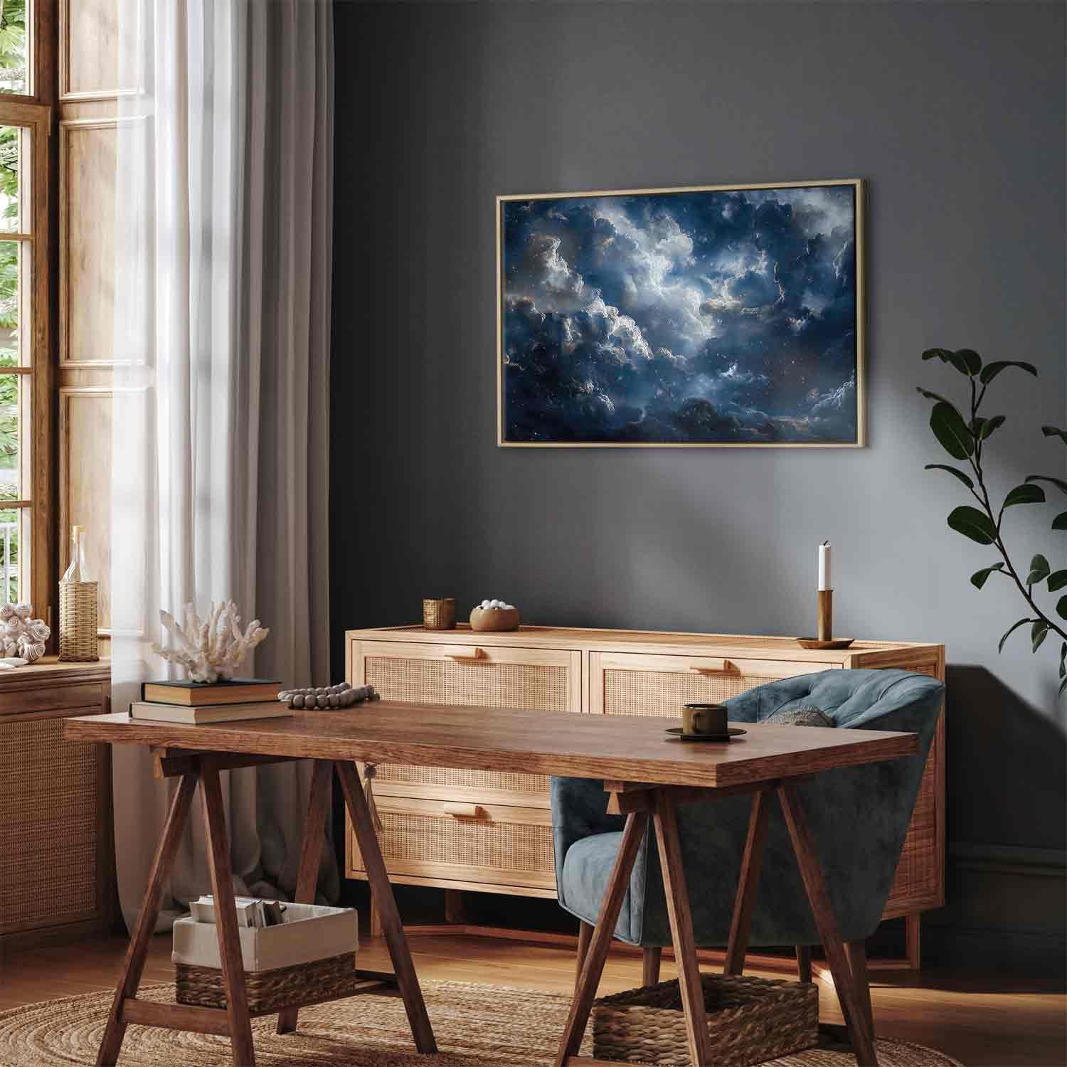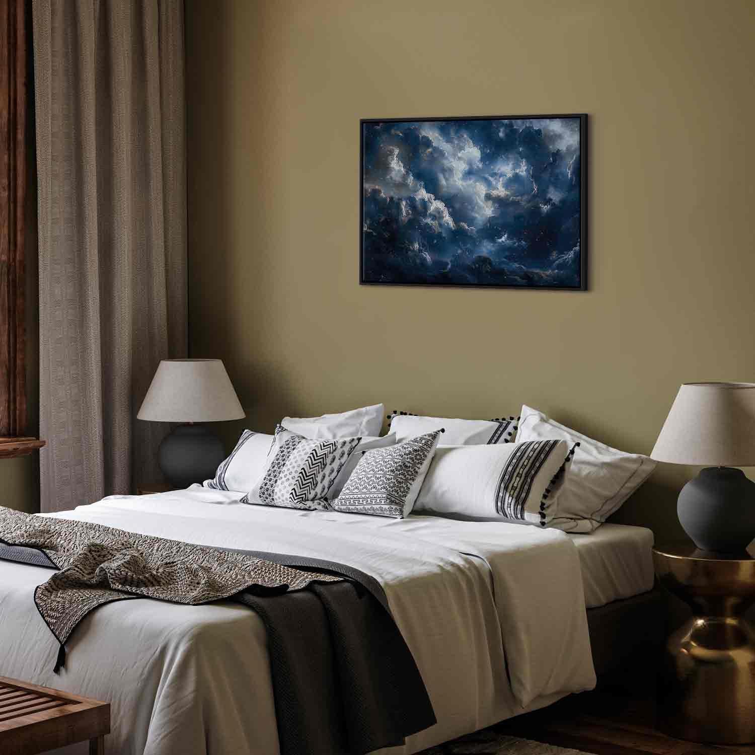 Unsere Bilder sind sicher und geruchsneutral und eignen sich daher ideal für Kinderzimmer. Die Größe wird Ihr Kind sicher beeindrucken! Bilder für Schlafzimmer sind ein echter Blickfang, genauso wie Bilder Wohnzimmer. Dekorieren Sie die Wände in Ihrem privaten Bereich mit einem Bild "Leinwandbild - Astronomical Wonders: Clouds and Stars in Harmonious Combination". Wir empfehlen Bilder für Schlafzimmer , die Sie beruhigen und in eine erholsame Stimmung versetzen. Bilder aus unserer Kollektion werden Ihrem Interieur eine außergewöhnliche Atmosphäre verleihen. Unabhängig vom Raum schaffen auch Kunst Bilder eine gemütliche Atmosphäre für die Gäste. Massive Holzrahmen unterstreichen den einzigartigen Charakter der Schlafzimmerbilder, und ein schneller und sicherer Versand ist ein weiterer Vorteil, der für diese Wanddekorationen spricht Leinwandbilder sind in fünf Varianten erhältlich, sodass jeder Kunde die perfekte Option für seine Bedürfnisse findet.Die Variante auf Strukturleinwand (Standard) ist eine universelle Dekoration, die das Haushaltsbudget nicht belastet.Für Liebhaber edler Materialien ist ein Druck auf italienischer Leinwand aus 100 % Baumwolle die ideale Wahl.Und für Fans der Malerei? Hier überzeugt die außergewöhnliche Premium-Print-Technik – ein Bild, das auf Strukturleinwand gedruckt und von Hand mit einer Schicht transparenten Gels überzogen wird, die die Pinselstriche eines Künstlers imitiert – ein „wie gemalt“-Effekt, aber zu einem günstigeren Preis.Die Variante im soliden Holzrahmen des Typs American Box mit Tiefeneffekt (zwei Rahmenfarben zur Auswahl, Motiv auf Strukturleinwand gedruckt) bietet eine klassische Lösung in neuer Form.Das Akustikbild (Druck auf Strukturleinwand mit einer zusätzlichen Schicht schallabsorbierendem Schaumstoff) ist dagegen ein Volltreffer für alle, die Ästhetik mit Funktionalität verbinden möchten.Zwar sind die beiden letzten Optionen nur für bestimmte Größen von einteiligen Bildern verfügbar, doch bei allen Varianten legen wir GRATIS die erforderliche Anzahl an Haken und Nägeln zur Montage bei.