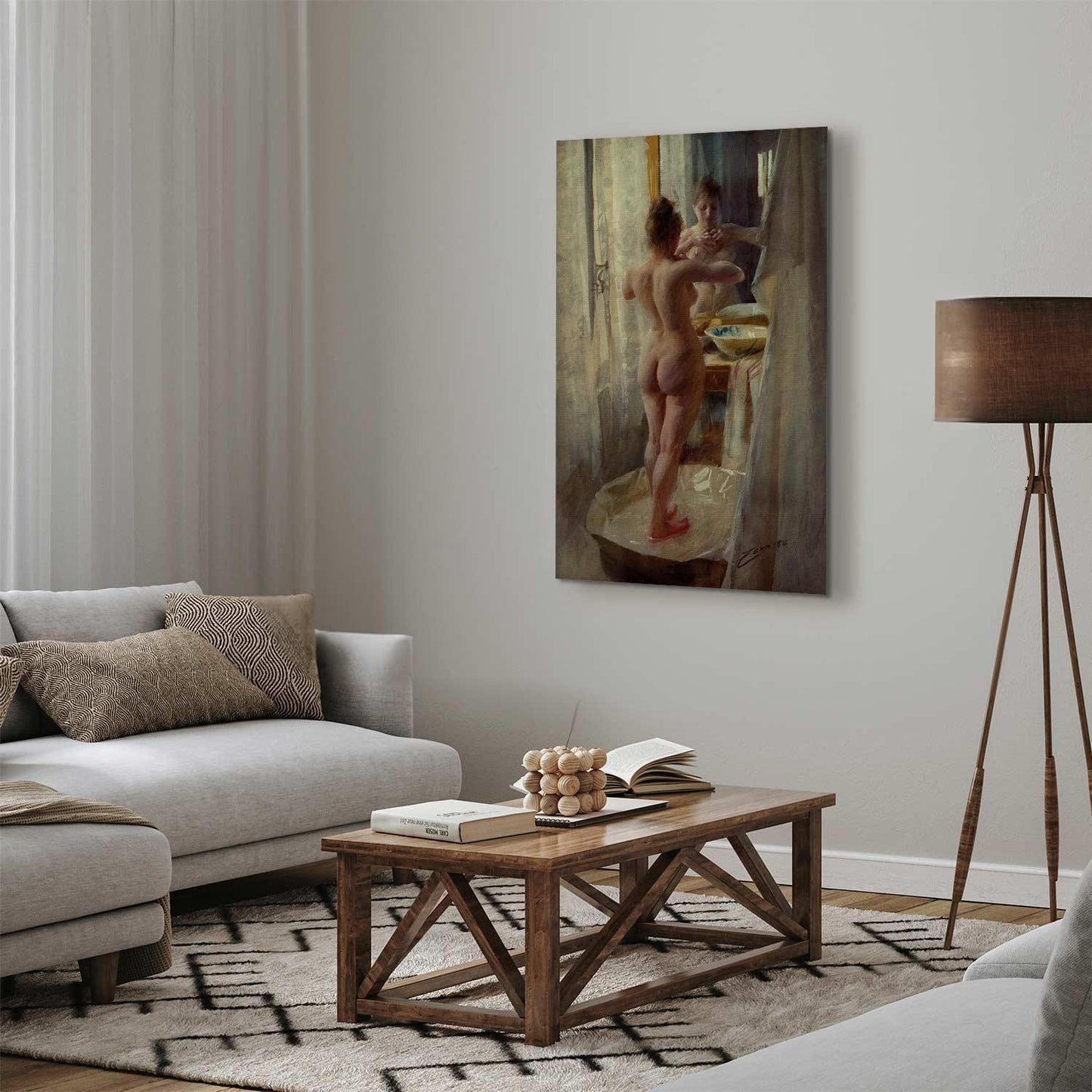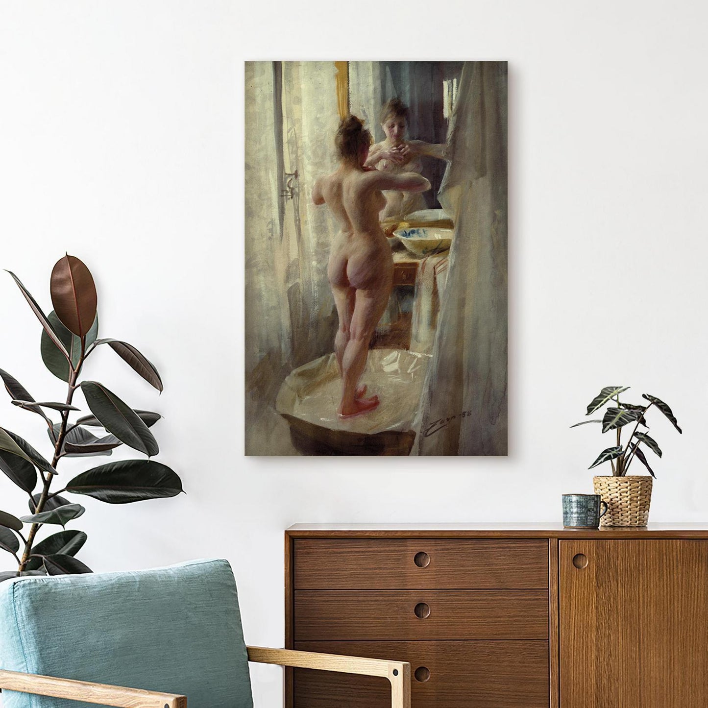 Unsere Bilder sind sicher und geruchsneutral und eignen sich daher ideal für Kinderzimmer. Die Größe wird Ihr Kind sicher beeindrucken! Bilder für Schlafzimmer sind ein echter Blickfang, genauso wie Bilder Wohnzimmer. Dekorieren Sie die Wände in Ihrem privaten Bereich mit einem Bild "Leinwandbild - At the Bathtub". Wir empfehlen Bilder für Schlafzimmer, die Sie beruhigen und in eine erholsame Stimmung versetzen. Bilder aus unserer Kollektion werden Ihrem Interieur eine außergewöhnliche Atmosphäre verleihen. Unabhängig vom Raum schaffen auch Kunst Bilder eine gemütliche Atmosphäre für die Gäste. Massive Holzrahmen unterstreichen den einzigartigen Charakter der Schlafzimmerbilder, und ein schneller und sicherer Versand ist ein weiterer Vorteil, der für diese Wanddekorationen spricht. Bilder auf Leinwand sind in vier Versionen erhältlich, aus denen jeder Kunde die perfekte Option für seine Bedürfnisse finden wird. Das Angebot umfasst eine Version auf Vliesleinwand (Standard), auf italienischer Leinwand, Premium Print (ein Bild, das auf italienischer Leinwand gedruckt und von Hand mit einer Schicht transparentem Gel überzogen ist, das die Pinselstriche des Künstlers imitiert) sowie in einem soliden, hölzernen American-Box-Rahmen (zwei Rahmenfarben zur Auswahl, Muster gedruckt auf italienischer Leinwand).