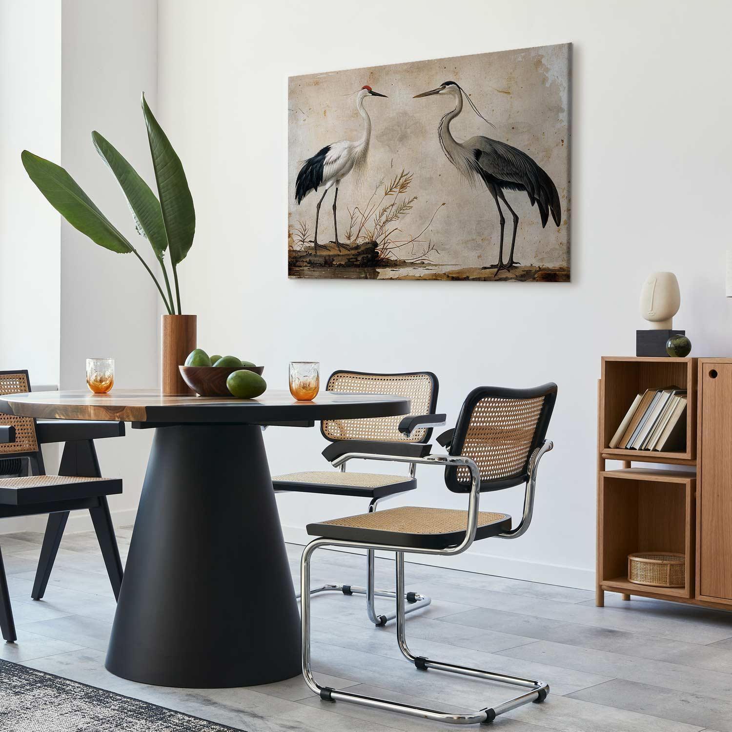 Leinwandbild - Birds from an old engraving - vintage-style illustration depicting a heron and a crane