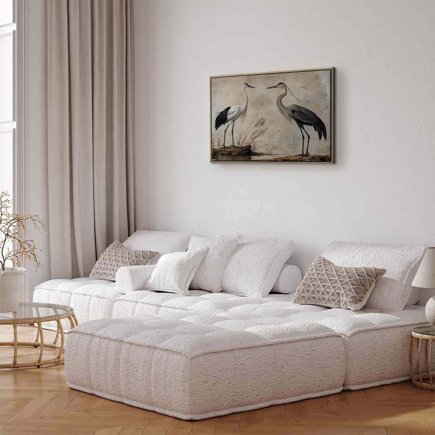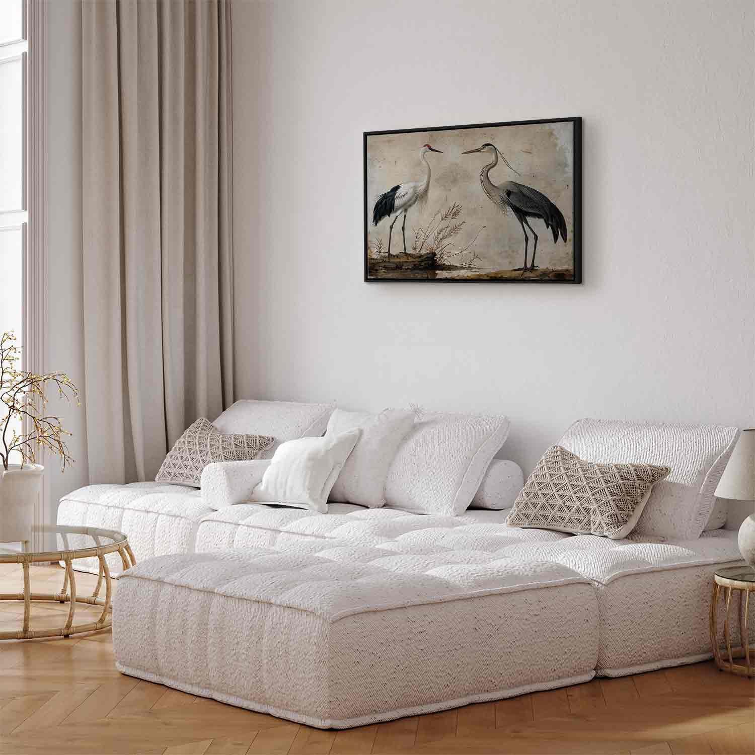 Unsere Bilder sind sicher und geruchsneutral und eignen sich daher ideal für Kinderzimmer. Die Größe wird Ihr Kind sicher beeindrucken! Bilder für Schlafzimmer sind ein echter Blickfang, genauso wie Bilder Wohnzimmer. Dekorieren Sie die Wände in Ihrem privaten Bereich mit einem Bild "Leinwandbild - Birds from an old engraving - vintage-style illustration depicting a heron and a crane". Wir empfehlen Bilder für Schlafzimmer , die Sie beruhigen und in eine erholsame Stimmung versetzen. Bilder aus unserer Kollektion werden Ihrem Interieur eine außergewöhnliche Atmosphäre verleihen. Unabhängig vom Raum schaffen auch Kunst Bilder eine gemütliche Atmosphäre für die Gäste. Massive Holzrahmen unterstreichen den einzigartigen Charakter der Schlafzimmerbilder, und ein schneller und sicherer Versand ist ein weiterer Vorteil, der für diese Wanddekorationen spricht Leinwandbilder sind in fünf Varianten erhältlich, sodass jeder Kunde die perfekte Option für seine Bedürfnisse findet.Die Variante auf Strukturleinwand (Standard) ist eine universelle Dekoration, die das Haushaltsbudget nicht belastet.Für Liebhaber edler Materialien ist ein Druck auf italienischer Leinwand aus 100 % Baumwolle die ideale Wahl.Und für Fans der Malerei? Hier überzeugt die außergewöhnliche Premium-Print-Technik – ein Bild, das auf Strukturleinwand gedruckt und von Hand mit einer Schicht transparenten Gels überzogen wird, die die Pinselstriche eines Künstlers imitiert – ein „wie gemalt“-Effekt, aber zu einem günstigeren Preis.Die Variante im soliden Holzrahmen des Typs American Box mit Tiefeneffekt (zwei Rahmenfarben zur Auswahl, Motiv auf Strukturleinwand gedruckt) bietet eine klassische Lösung in neuer Form.Das Akustikbild (Druck auf Strukturleinwand mit einer zusätzlichen Schicht schallabsorbierendem Schaumstoff) ist dagegen ein Volltreffer für alle, die Ästhetik mit Funktionalität verbinden möchten.Zwar sind die beiden letzten Optionen nur für bestimmte Größen von einteiligen Bildern verfügbar, doch bei allen Varianten legen wir GRATIS die erforderliche Anzahl an Haken und Nägeln zur Montage bei.