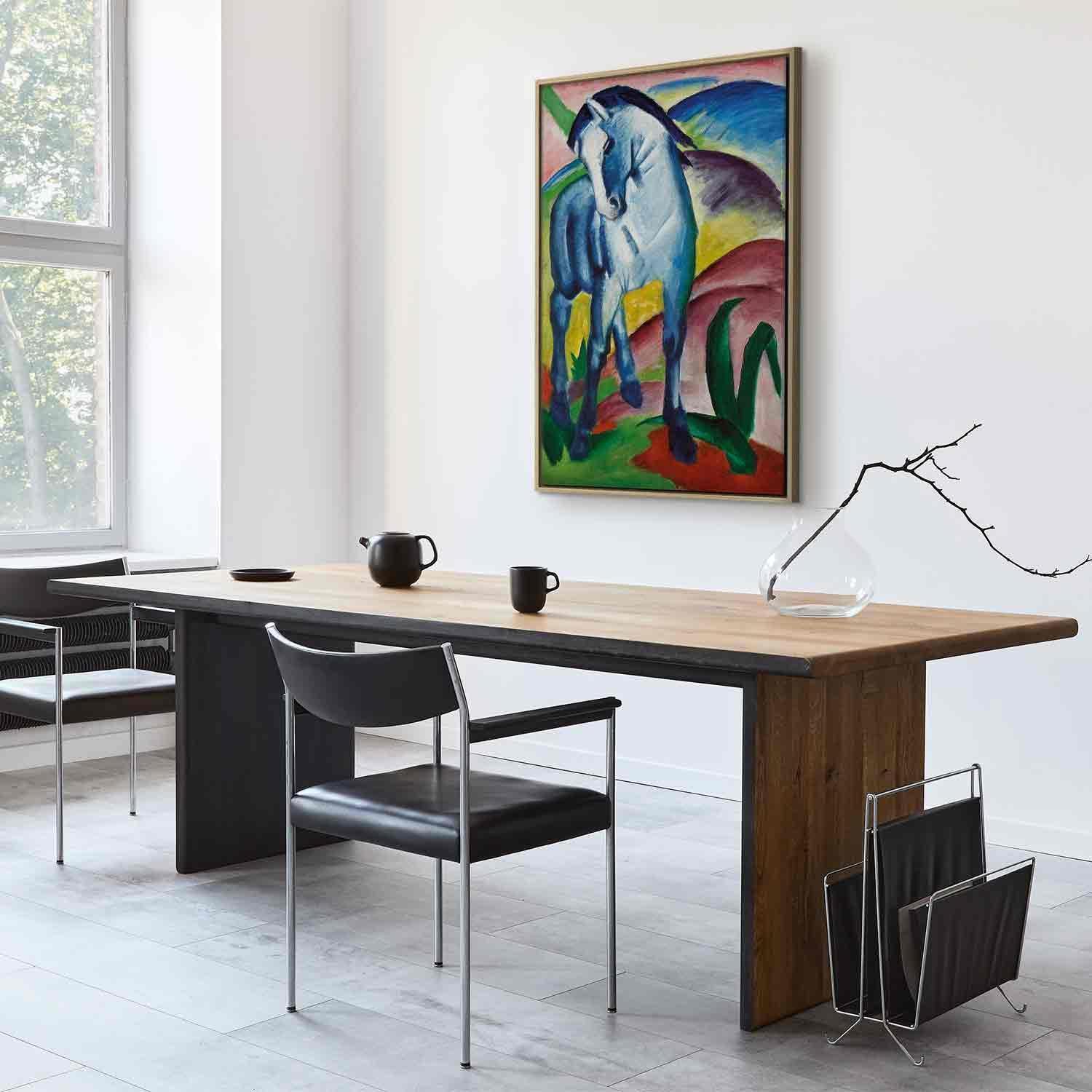 Unsere Bilder sind sicher und geruchsneutral und eignen sich daher ideal für Kinderzimmer. Die Größe wird Ihr Kind sicher beeindrucken! Bilder für Schlafzimmer sind ein echter Blickfang, genauso wie Bilder Wohnzimmer. Dekorieren Sie die Wände in Ihrem privaten Bereich mit einem Bild "Leinwandbild - Franz Marc – Blue Horse". Wir empfehlen Bilder für Schlafzimmer , die Sie beruhigen und in eine erholsame Stimmung versetzen. Bilder aus unserer Kollektion werden Ihrem Interieur eine außergewöhnliche Atmosphäre verleihen. Unabhängig vom Raum schaffen auch Kunst Bilder eine gemütliche Atmosphäre für die Gäste. Massive Holzrahmen unterstreichen den einzigartigen Charakter der Schlafzimmerbilder, und ein schneller und sicherer Versand ist ein weiterer Vorteil, der für diese Wanddekorationen spricht Leinwandbilder sind in fünf Varianten erhältlich, sodass jeder Kunde die perfekte Option für seine Bedürfnisse findet.Die Variante auf Strukturleinwand (Standard) ist eine universelle Dekoration, die das Haushaltsbudget nicht belastet.Für Liebhaber edler Materialien ist ein Druck auf italienischer Leinwand aus 100 % Baumwolle die ideale Wahl.Und für Fans der Malerei? Hier überzeugt die außergewöhnliche Premium-Print-Technik – ein Bild, das auf Strukturleinwand gedruckt und von Hand mit einer Schicht transparenten Gels überzogen wird, die die Pinselstriche eines Künstlers imitiert – ein „wie gemalt“-Effekt, aber zu einem günstigeren Preis.Die Variante im soliden Holzrahmen des Typs American Box mit Tiefeneffekt (zwei Rahmenfarben zur Auswahl, Motiv auf Strukturleinwand gedruckt) bietet eine klassische Lösung in neuer Form.Das Akustikbild (Druck auf Strukturleinwand mit einer zusätzlichen Schicht schallabsorbierendem Schaumstoff) ist dagegen ein Volltreffer für alle, die Ästhetik mit Funktionalität verbinden möchten.Zwar sind die beiden letzten Optionen nur für bestimmte Größen von einteiligen Bildern verfügbar, doch bei allen Varianten legen wir GRATIS die erforderliche Anzahl an Haken und Nägeln zur Montage bei.