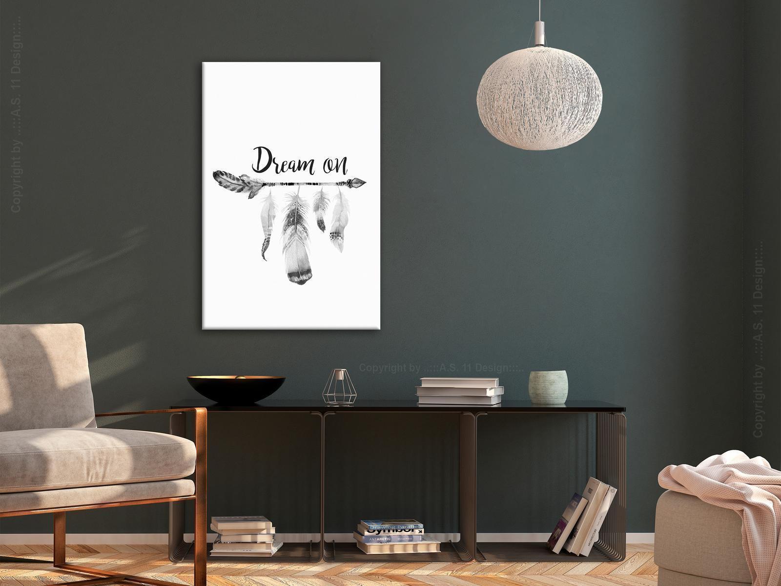 Unsere Bilder sind sicher und geruchsneutral und eignen sich daher ideal für Kinderzimmer. Die Größe wird Ihr Kind sicher beeindrucken! Bilder für Schlafzimmer sind ein echter Blickfang, genauso wie Bilder Wohnzimmer. Dekorieren Sie die Wände in Ihrem privaten Bereich mit einem Bild "Leinwandbild - Boho Feathers (1-part) - English Text on White Background". Wir empfehlen Bilder für Schlafzimmer, die Sie beruhigen und in eine erholsame Stimmung versetzen. Bilder aus unserer Kollektion werden Ihrem Interieur eine außergewöhnliche Atmosphäre verleihen. Unabhängig vom Raum schaffen auch Kunst Bilder eine gemütliche Atmosphäre für die Gäste. Massive Holzrahmen unterstreichen den einzigartigen Charakter der Schlafzimmerbilder, und ein schneller und sicherer Versand ist ein weiterer Vorteil, der für diese Wanddekorationen spricht. Bilder auf Leinwand sind in vier Versionen erhältlich, aus denen jeder Kunde die perfekte Option für seine Bedürfnisse finden wird. Das Angebot umfasst eine Version auf Vliesleinwand (Standard), auf italienischer Leinwand, Premium Print (ein Bild, das auf italienischer Leinwand gedruckt und von Hand mit einer Schicht transparentem Gel überzogen ist, das die Pinselstriche des Künstlers imitiert) sowie in einem soliden, hölzernen American-Box-Rahmen (zwei Rahmenfarben zur Auswahl, Muster gedruckt auf italienischer Leinwand).