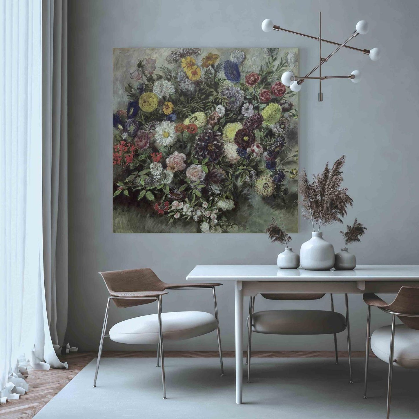 Unsere Bilder sind sicher und geruchsneutral und eignen sich daher ideal für Kinderzimmer. Die Größe wird Ihr Kind sicher beeindrucken! Bilder für Schlafzimmer sind ein echter Blickfang, genauso wie Bilder Wohnzimmer. Dekorieren Sie die Wände in Ihrem privaten Bereich mit einem Bild "Leinwandbild - Bouquet of Flowers (Eugène Delacroix)". Wir empfehlen Bilder für Schlafzimmer, die Sie beruhigen und in eine erholsame Stimmung versetzen. Bilder aus unserer Kollektion werden Ihrem Interieur eine außergewöhnliche Atmosphäre verleihen. Unabhängig vom Raum schaffen auch Kunst Bilder eine gemütliche Atmosphäre für die Gäste. Massive Holzrahmen unterstreichen den einzigartigen Charakter der Schlafzimmerbilder, und ein schneller und sicherer Versand ist ein weiterer Vorteil, der für diese Wanddekorationen spricht. Bilder auf Leinwand sind in vier Versionen erhältlich, aus denen jeder Kunde die perfekte Option für seine Bedürfnisse finden wird. Das Angebot umfasst eine Version auf Vliesleinwand (Standard), auf italienischer Leinwand, Premium Print (ein Bild, das auf italienischer Leinwand gedruckt und von Hand mit einer Schicht transparentem Gel überzogen ist, das die Pinselstriche des Künstlers imitiert) sowie in einem soliden, hölzernen American-Box-Rahmen (zwei Rahmenfarben zur Auswahl, Muster gedruckt auf italienischer Leinwand).