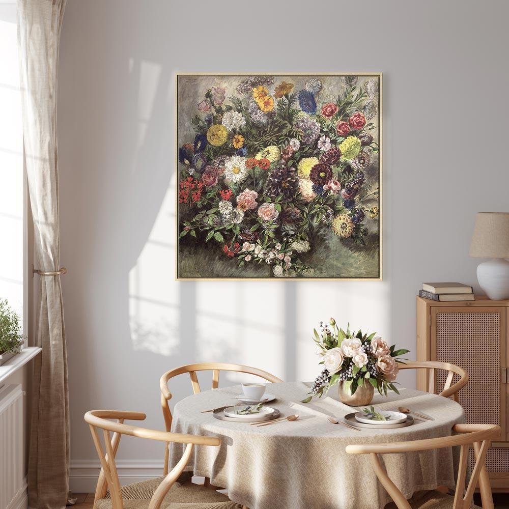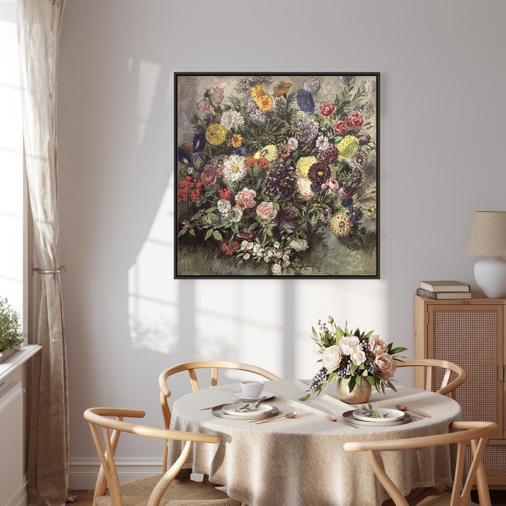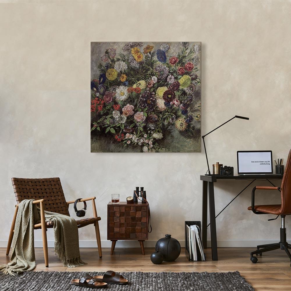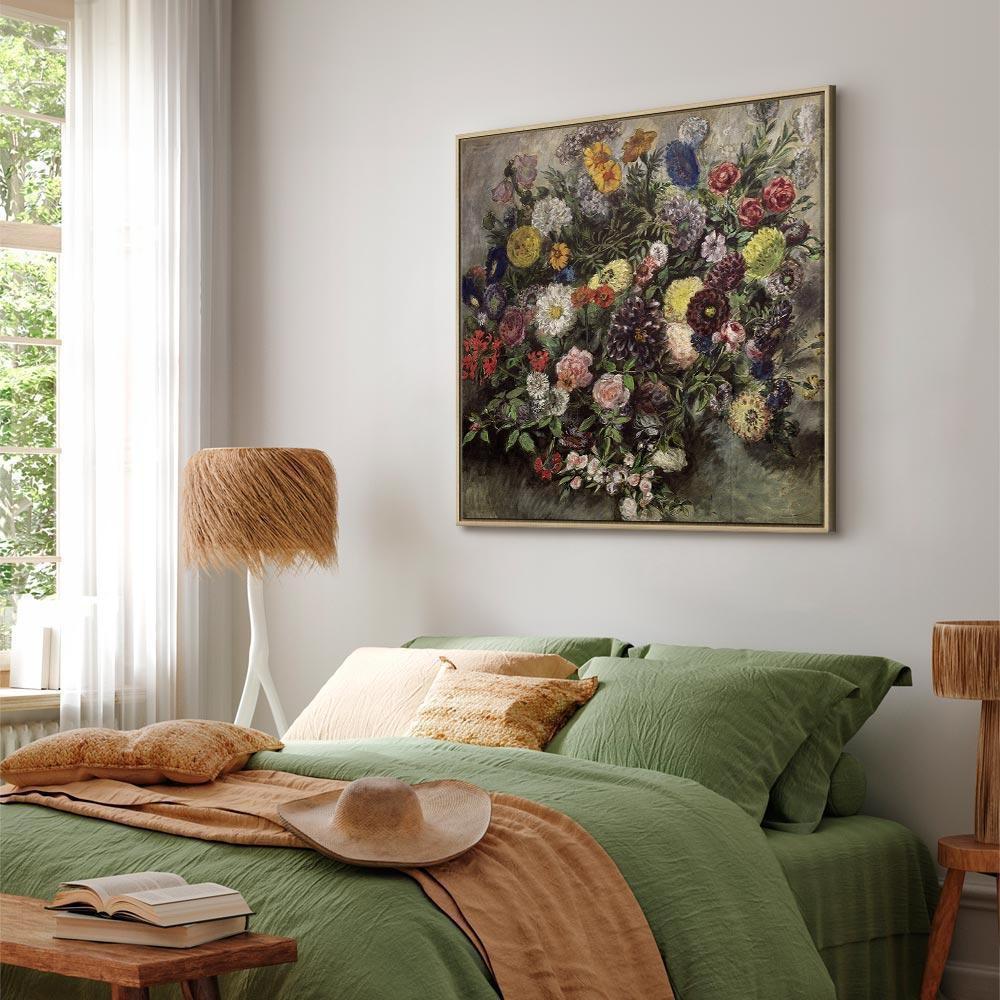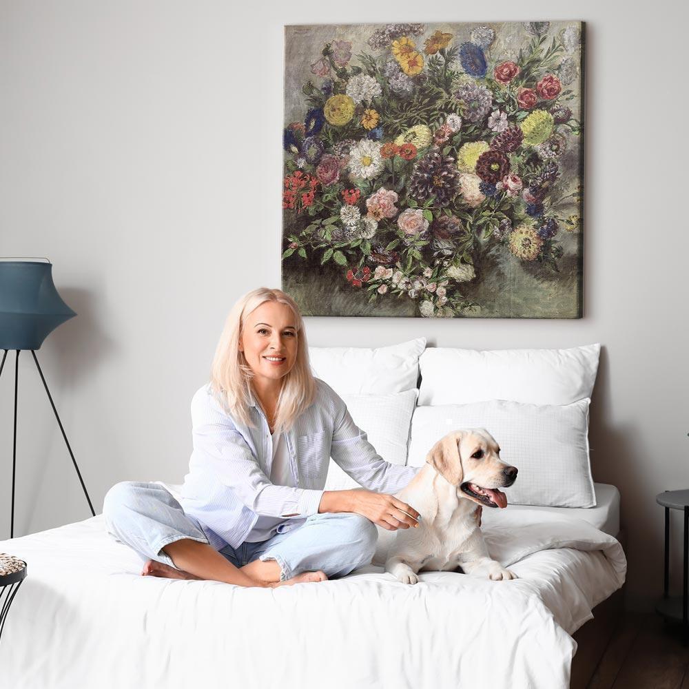 Unsere Bilder sind sicher und geruchsneutral und eignen sich daher ideal für Kinderzimmer. Die Größe wird Ihr Kind sicher beeindrucken! Bilder für Schlafzimmer sind ein echter Blickfang, genauso wie Bilder Wohnzimmer. Dekorieren Sie die Wände in Ihrem privaten Bereich mit einem Bild "Leinwandbild - Eugène Delacroix – Bouquet of Flowers". Wir empfehlen Bilder für Schlafzimmer , die Sie beruhigen und in eine erholsame Stimmung versetzen. Bilder aus unserer Kollektion werden Ihrem Interieur eine außergewöhnliche Atmosphäre verleihen. Unabhängig vom Raum schaffen auch Kunst Bilder eine gemütliche Atmosphäre für die Gäste. Massive Holzrahmen unterstreichen den einzigartigen Charakter der Schlafzimmerbilder, und ein schneller und sicherer Versand ist ein weiterer Vorteil, der für diese Wanddekorationen spricht Leinwandbilder sind in fünf Varianten erhältlich, sodass jeder Kunde die perfekte Option für seine Bedürfnisse findet.Die Variante auf Strukturleinwand (Standard) ist eine universelle Dekoration, die das Haushaltsbudget nicht belastet.Für Liebhaber edler Materialien ist ein Druck auf italienischer Leinwand aus 100 % Baumwolle die ideale Wahl.Und für Fans der Malerei? Hier überzeugt die außergewöhnliche Premium-Print-Technik – ein Bild, das auf Strukturleinwand gedruckt und von Hand mit einer Schicht transparenten Gels überzogen wird, die die Pinselstriche eines Künstlers imitiert – ein „wie gemalt“-Effekt, aber zu einem günstigeren Preis.Die Variante im soliden Holzrahmen des Typs American Box mit Tiefeneffekt (zwei Rahmenfarben zur Auswahl, Motiv auf Strukturleinwand gedruckt) bietet eine klassische Lösung in neuer Form.Das Akustikbild (Druck auf Strukturleinwand mit einer zusätzlichen Schicht schallabsorbierendem Schaumstoff) ist dagegen ein Volltreffer für alle, die Ästhetik mit Funktionalität verbinden möchten.Zwar sind die beiden letzten Optionen nur für bestimmte Größen von einteiligen Bildern verfügbar, doch bei allen Varianten legen wir GRATIS die erforderliche Anzahl an Haken und Nägeln zur Montage bei.