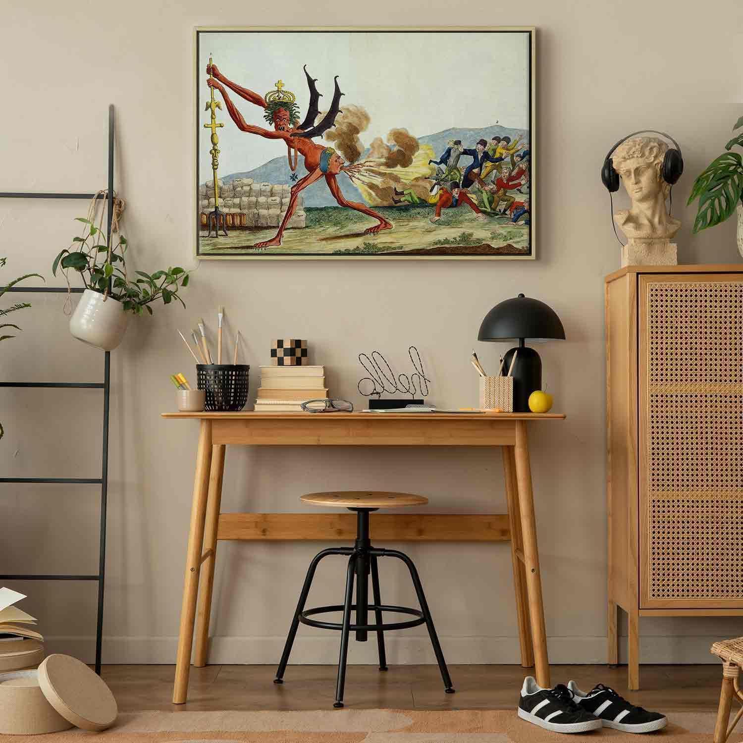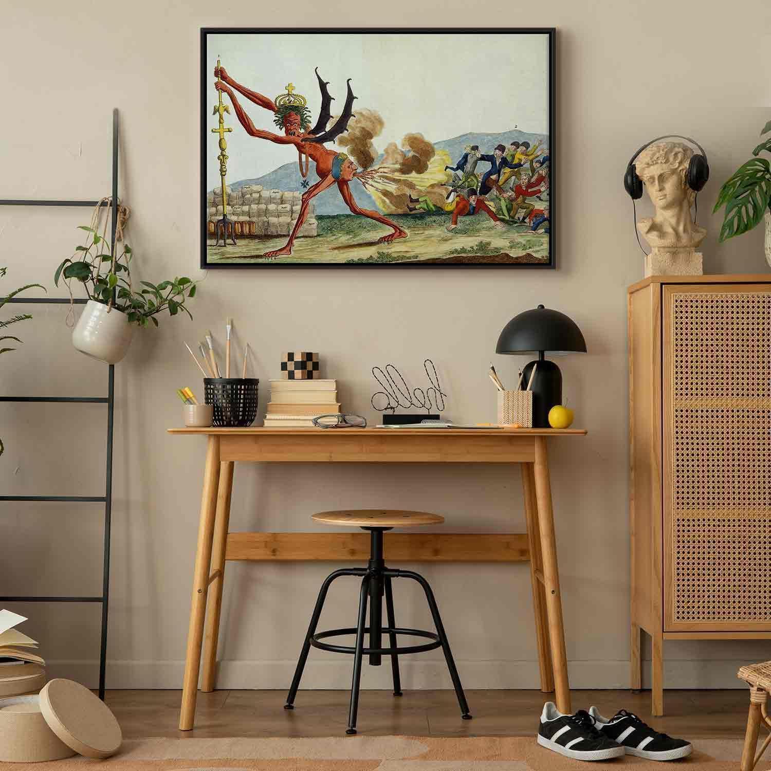 Unsere Bilder sind sicher und geruchsneutral und eignen sich daher ideal für Kinderzimmer. Die Größe wird Ihr Kind sicher beeindrucken! Bilder für Schlafzimmer sind ein echter Blickfang, genauso wie Bilder Wohnzimmer. Dekorieren Sie die Wände in Ihrem privaten Bereich mit einem Bild "Leinwandbild - Jacques-Louis David – Caricature of the English Government". Wir empfehlen Bilder für Schlafzimmer , die Sie beruhigen und in eine erholsame Stimmung versetzen. Bilder aus unserer Kollektion werden Ihrem Interieur eine außergewöhnliche Atmosphäre verleihen. Unabhängig vom Raum schaffen auch Kunst Bilder eine gemütliche Atmosphäre für die Gäste. Massive Holzrahmen unterstreichen den einzigartigen Charakter der Schlafzimmerbilder, und ein schneller und sicherer Versand ist ein weiterer Vorteil, der für diese Wanddekorationen spricht Leinwandbilder sind in fünf Varianten erhältlich, sodass jeder Kunde die perfekte Option für seine Bedürfnisse findet.Die Variante auf Strukturleinwand (Standard) ist eine universelle Dekoration, die das Haushaltsbudget nicht belastet.Für Liebhaber edler Materialien ist ein Druck auf italienischer Leinwand aus 100 % Baumwolle die ideale Wahl.Und für Fans der Malerei? Hier überzeugt die außergewöhnliche Premium-Print-Technik – ein Bild, das auf Strukturleinwand gedruckt und von Hand mit einer Schicht transparenten Gels überzogen wird, die die Pinselstriche eines Künstlers imitiert – ein „wie gemalt“-Effekt, aber zu einem günstigeren Preis.Die Variante im soliden Holzrahmen des Typs American Box mit Tiefeneffekt (zwei Rahmenfarben zur Auswahl, Motiv auf Strukturleinwand gedruckt) bietet eine klassische Lösung in neuer Form.Das Akustikbild (Druck auf Strukturleinwand mit einer zusätzlichen Schicht schallabsorbierendem Schaumstoff) ist dagegen ein Volltreffer für alle, die Ästhetik mit Funktionalität verbinden möchten.Zwar sind die beiden letzten Optionen nur für bestimmte Größen von einteiligen Bildern verfügbar, doch bei allen Varianten legen wir GRATIS die erforderliche Anzahl an Haken und Nägeln zur Montage bei.